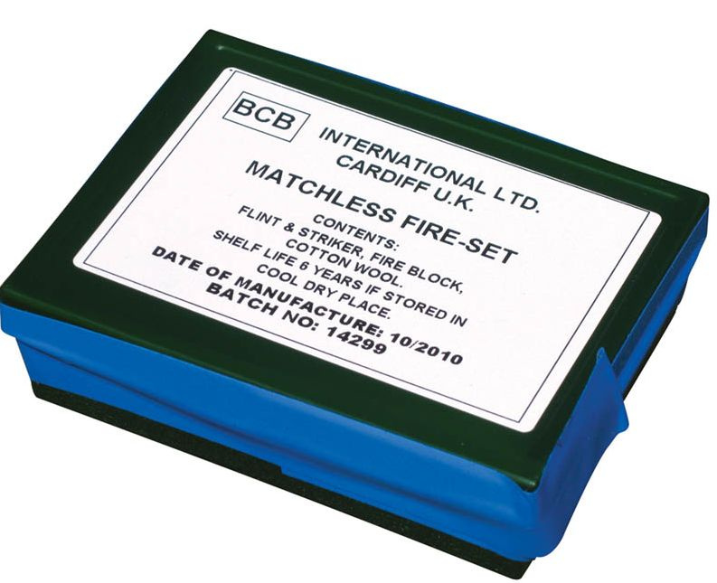 -plastová transparentní krabička se sadou na rozdělání ohně