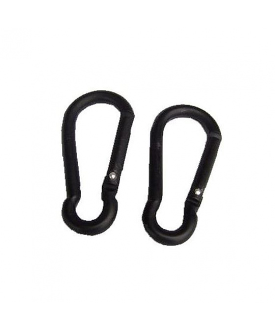 sada dvou rychloupínacích aluminiových černých karabin o průměru 6mm s vysokou pevností v tahu ideální pro upevnění doplňků k různým částem vybaveníVíce