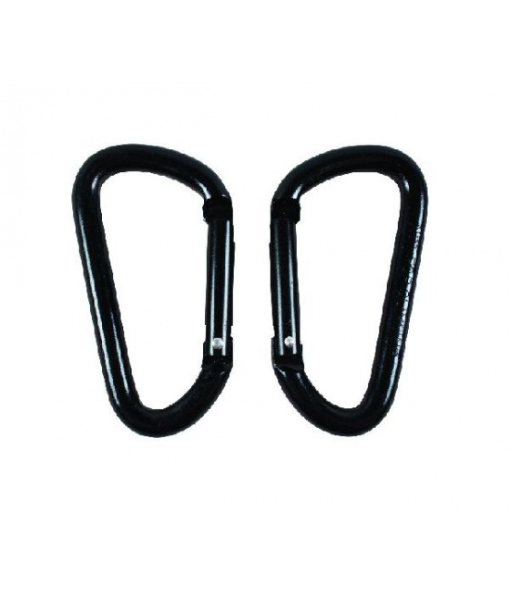 sada dvou rychloupínacích aluminiových černých karabin o průměru 8mm s vysokou pevností v tahu ideální pro upevnění doplňků k různým částem vybaveníVíce