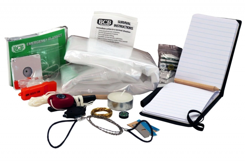 -sada pro přežití s prostředky určenými pro lovce a pomáhající při značení, signalizaci v nouzových situacích a zapálení ohně