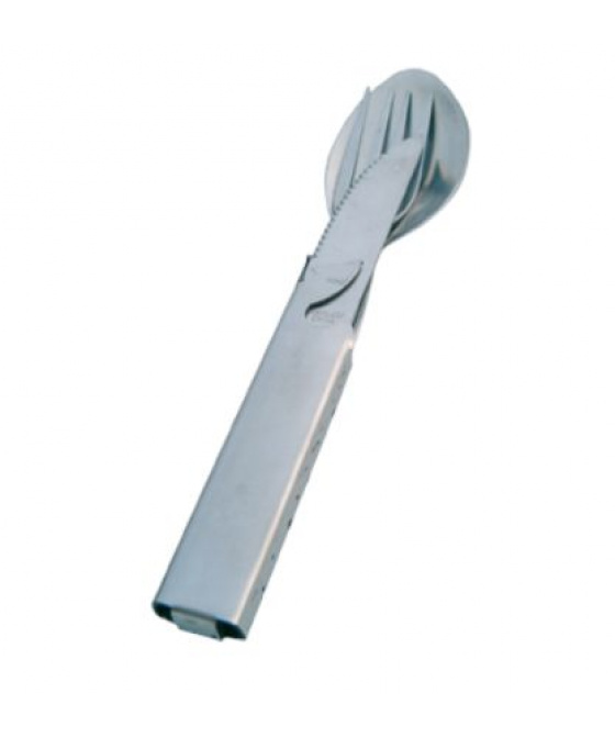 -sada obsahuje nůž, vidličku, lžíci a otvírák na konzervy