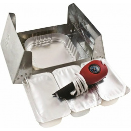 lehký, kompaktní a odolný skládací vařič na různé druhy paliv snadné použití pouze ve venkovním prostředí účinný a opakovatelně použitelný závětří na ochranu před větrem, které zvyšuje účinnost a snižuje teplotní ztráty během vaření ideální pro kempování, turistiku, na festivaly a další aktivity doporučuje se pro použití s lihovými a jinými pevnými tabletami nebo gelovými palivy vařič je navržen tak, aby dosáhl nejlepších výsledků v kombinaci s palivy Fire Dragon součástí jsou tři bloky gelového paliva Fire Dragon 27 g magnéziový podpalovač s pevnou rukojetí a kompasem pro základní orientaci podpalovač využívá magnézia jako zdroje plamene o teplotě 3000°C pomocí přiložené ocílky, vrchní hrany nože či jiného vhodného kovového předmětu se naškrábejte drobné magnéziové piliny na vhodný troud, jako je suché jehličí, listí nebo suchá tráva rychlým pohybem přejíždějte po celé délce tyčinky podpalovače vzniklé jiskry snadno zapálí předem připravený troud jiskru podpalovače lze použít jako nouzový signál podpalovač je vodovzdorný, lze jej použít ve vlhku, chladu i sněhu jeden podpalovač vystačí na rozdělání stovek ohňů