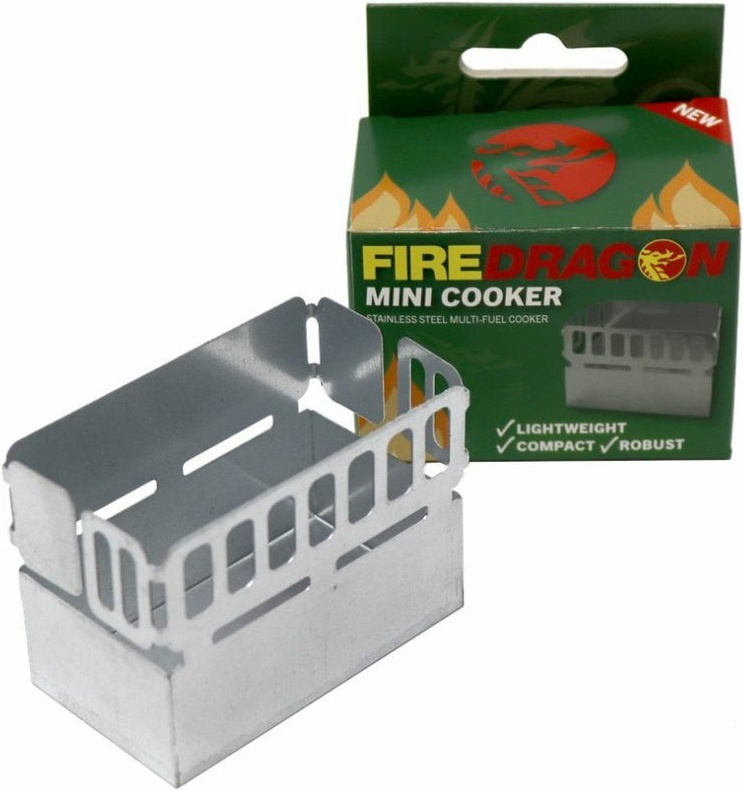 ultralehký, kompaktní a odolný mini vařič na pevná paliva pro použití ve venkovním prostředí účinný a opakovatelně použitelný boční strany slouží závětří na ochranu před větrem, které zvyšuje účinnost a snižuje teplotní ztráty během vaření při použití objemnějších nádob je možné boční strany rozložit a vytvořit větší varnou plochu vařič je navržen tak, aby dosáhl nejlepších výsledků v kombinaci s palivy Fire Dragon ,ale lze využít i jiná vhodná pevná paliva palivo není součástí balení vyrobeno z ocelového plechu navrženo pro kempování, turistiku, na festivaly a další aktivityVíce