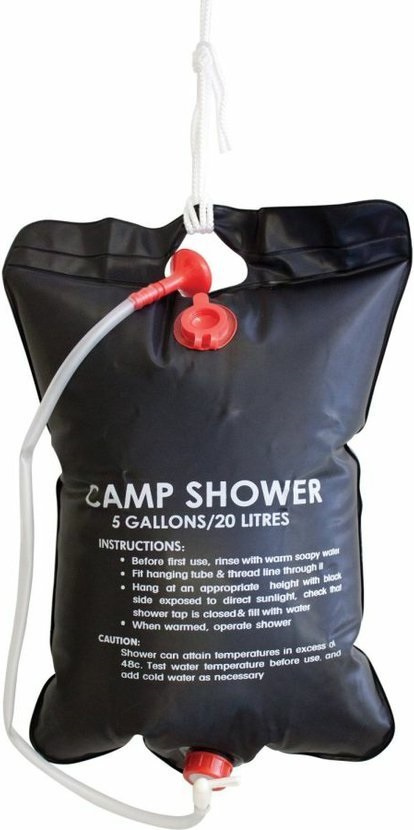 solární sprcha se zásobníkem na 20 l, absorbující sluneční záření a ekologicky zabezpečující ohřev vody do 48°C transparentní zadní část sprchy otvor pro zavěšení háček s provázkem pro další možnost zavěšení tyč určená pro navlečení do otvoru v horní části sprchy a sloužící jako pevná rukojeť sprchový kohoutek kompaktní balení jednoduchá instalaceVíce