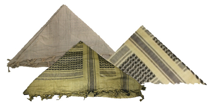 -univerzální šátek čipokrývka hlavy vhodná nejen dotropických oblastí a pouští -poskytuje ochranu před sluncem, větrem, prachem nebopískem -několikrát přeložený skvěle absorbuje pot a můžesloužit jako polní „kapesník“ -rozvinutý může sloužit například jako potah nahelmu