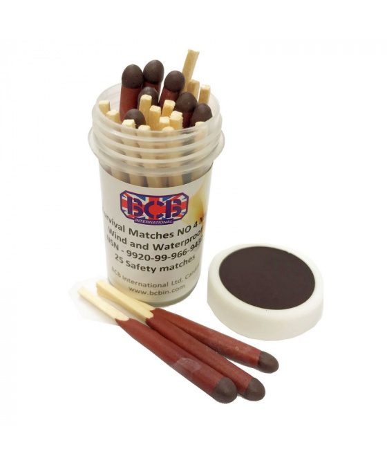 -zápalky vyvinuté pro britské ministerstvo obrany -ručně namáčené a impregnované -hoří za extrémního počasí, v hustém dešti nebo když jsou mokré -rozhoří se po ponoření do vody -voděodolné pouzdro obsahuje dvě škrtátka umístěná na horní a spodní straně -kousek vaty, který může posloužit jako troud -extrémně dlouhá impregnovaná hlavička zápalky hoří i při silném větru -1 zápalka hoří cca 10 sekund -ideální pro použití v extrémních podmínkách -schváleno pro použití ve složkách NATO (NSN-9920-99-665-4243) -vyrobeno ve Velké Británii