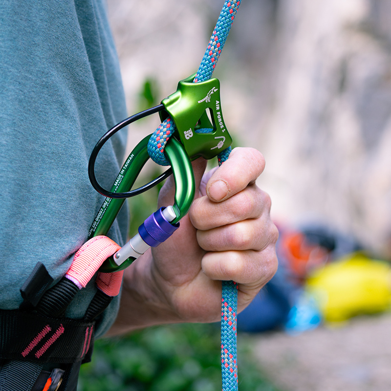 Air Force One je jistící a slaňovací kýbl pro jednoduchá (singl) lana v průměrech 8,5 (Beal Opera Unicore) - 10,5mm (Beal Top Gun Unicore). Upravená „V“ drážka zaručuje dokonalé tření pro rychlé zaseknutí lana.