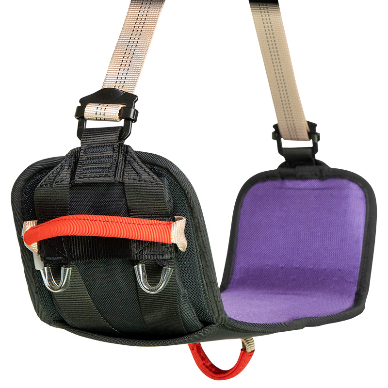 AIR SIT je ultrastabilní a ergonomická závěsná sedačka určená pro práci na laně. Díky bočnímu triangulačnímu systému a prodyšnému pěnovému polstrování nabízí při delším zavěšení výjimečné pohodlí. Je vybavena pevnými bočními poutky, několika očky pro připojení příslušenství a zesíleným spodním okem pro uchycení brašny na nářadí nebo jiného vybavení.