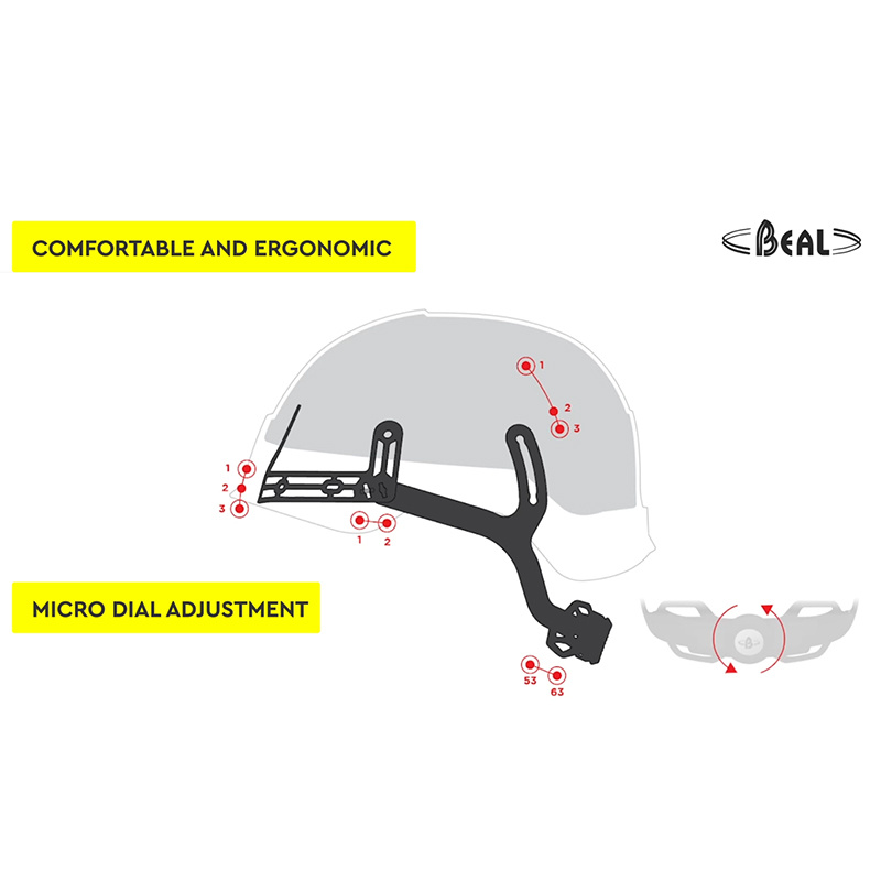 Lehká pracovní přilba s ABS skořepinou a polystyrenovou výztuhou pro optimální pohlcení energie při pádu či nárazu. Pro nastavení velikosti jsou k dispozici 3 zóny: čelní polohovací řemínek, boční řemínky pro nastavení výšky a zadní kolečko, snadno ovladatelné pomocí jedné ruky, umožňující rychlé a velmi jemné dotažení přilby na hlavě. Pro potřebnou ventilaci slouží 6 vrchních otvorů, které jsou opatřeny proti zatékání vody. Přilba nabízí 2 možnosti upevnění čelovky. Buď je možné čelovku připevnit klasicky 4 postranními klipy, nebo lze využít přední a zadní slot. K pracovní přilbě BEAL Quantum lze připojit i přední polykarbonátový štít BEAL Quantum Visor nebo krční clonu proti slunci BEAL Quantum Neck Protect, které nejsou součástí přilby.