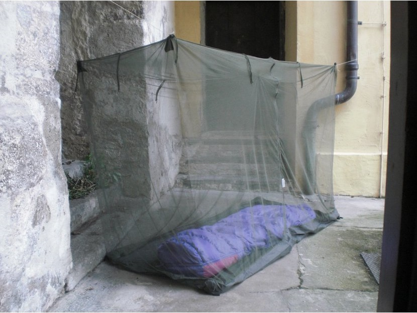 vysoce kvalitní moskytiéra na ochranu před komáry a dalším obtížným hmyzem integrovaná nylonová podlážka vytváří zcela uzavřený prostor, který zabraňuje proniknutí hmyzu určeno pro použití přes skládací lůžka nebo kempinková lehátka moskytiéra může být postavena díky konstrukci z aluminiových tyček nebo zavěšena pomocí ok velký vstupní otvor uzavíratelný zipem tunelové švy pro navlečení aluminiových tyčekVíce