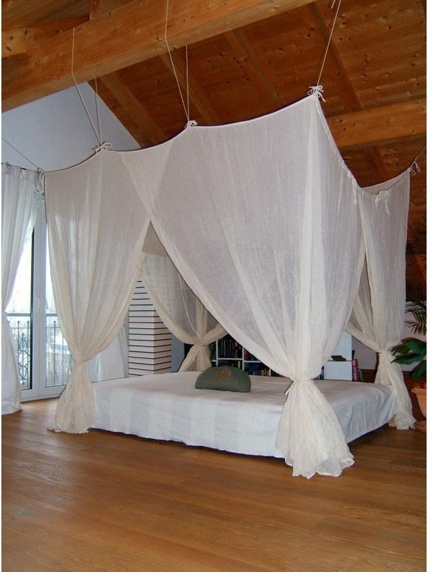 velmi prostorná dekorativní bavlněná moskytiéra přes dvě velké postele, určená pro 2 až 3 osoby k přehození přes postel určeno pro fyzickou ochranu před komáry a dalším nepříjemným hmyzem a zároveň jako dekorace interiéru čtyři překrývající se vchody, které lze svázat dohromady, dotváří atraktivním způsobem interiér i exteriér hustota více než 100 ok na cm2 vázací lana v rozích a poutka podél horního obvodu moskytiéry pro možnost zavěšení během používání nevznikají elektrostatické výboje na povrchu materiálu uloženo v bavlněném vaku se stahováním moskytiéry z kolekce Cotton jsou skutečnou alternativou k syntentickým moskytiérám a jsou vyráběny z neupravované 100% přírodní bavlny bavlna není upravována úmyslně není odbarvená, předsražená ani mercerovaná pro zachování přírodních vlastností velmi dobrá absorpce vlhkosti materiálu pro zajištění příjemného klima během spánku pod moskytiérou síť může absorbovat vlhkost také během transportu nebo skladování, přičemž se může vyvinout specifická vůně materiálu tato vůně zmizí sama od sebe, pokud je bavlněnému materiálu umožněno dýchat a přirozeně se vysoušet na vzdušném, suchém místěVíce