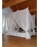 velmi prostorná dekorativní bavlněná moskytiéra přes dvě velké postele, určená pro 2 až 3 osoby k přehození přes postel určeno pro fyzickou ochranu před komáry a dalším nepříjemným hmyzem a zároveň jako dekorace interiéru čtyři překrývající se vchody, které lze svázat dohromady, dotváří atraktivním způsobem interiér i exteriér hustota více než 100 ok na cm2 vázací lana v rozích a poutka podél horního obvodu moskytiéry pro možnost zavěšení během používání nevznikají elektrostatické výboje na povrchu materiálu uloženo v bavlněném vaku se stahováním moskytiéry z kolekce Cotton jsou skutečnou alternativou k syntentickým moskytiérám a jsou vyráběny z neupravované 100% přírodní bavlny bavlna není upravována úmyslně není odbarvená, předsražená ani mercerovaná pro zachování přírodních vlastností velmi dobrá absorpce vlhkosti materiálu pro zajištění příjemného klima během spánku pod moskytiérou síť může absorbovat vlhkost také během transportu nebo skladování, přičemž se může vyvinout specifická vůně materiálu tato vůně zmizí sama od sebe, pokud je bavlněnému materiálu umožněno dýchat a přirozeně se vysoušet na vzdušném, suchém místě