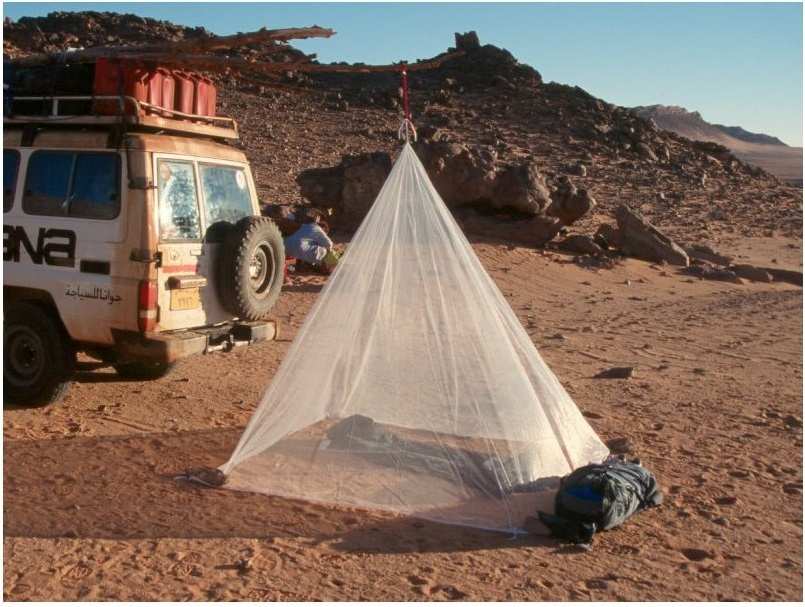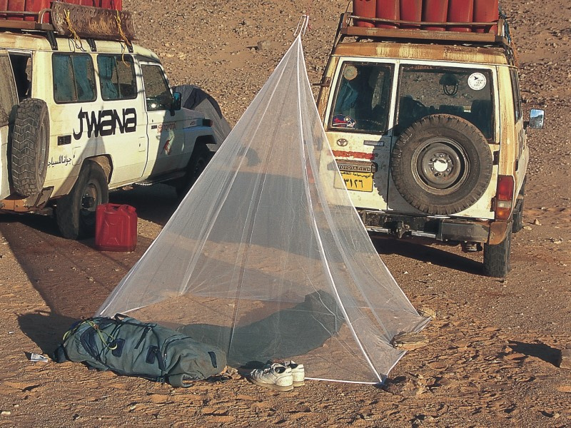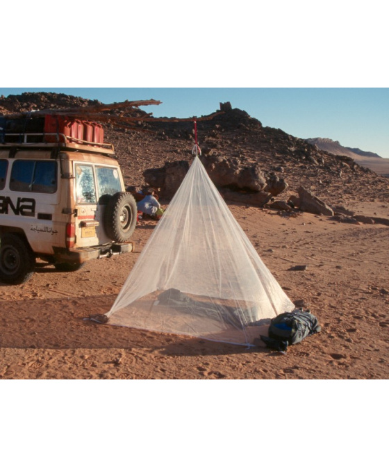 -extrémně lehká moskytiéra ve tvaru pyramidy vyrobená z obzvláště jemné síťoviny, která poskytuje ochranu před drobným hmyzem díky velikosti ok a svému tvaru -dokáže úspěšně odpuzovat bodavý hmyz, jako je např. druh Culex, Anopheles (malárie), Aedes (horečka dengue, žlutá zimnice, chicungunya), stejně jako písečné komáry čeledi Phlebotomidae (leishmanióza) a běžné komáry a moskyty (filarióza) -poskytuje celkovou ochranu také proti písečným blechám -vyrobeno ze 100% polyamidu v bílém provedení -smyčky v dolních rozích umožňují bezpečné připojení k podložce nebo matraci -hustota více než 155 ok na cm2 -tenká vlákna zajišťují skvělou cirkulaci vzduchu -určeno pro 1 osobu -ideální jak na pobyt v tropech, tak skandinávském severu -úložný obal se stahovací šňůrkou a poutkem pro zavěšení -moskytiéra není impregnovaná
