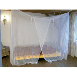 lehká moskytiéra ve tvaru boxu vyrobená z polyesterové síťoviny, která poskytuje ochranu před hmyzem dokáže úspěšně odpuzovat bodavý hmyz, jako je např. druh Culex, Anopheles (malárie), Aedes (horečka dengue, žlutá zimnice, chicungunya), stejně jako běžné komáry a moskyty tvar boxu poskytuje vynikající pokrytí prostoru kolem jedné postele poutka v horní části pro možnost zavěšení vyrobeno ze 100% polyesteru v bílém provedení hustota 33 - 35 ok na cm2 ideální pro nerušený spánek doma, na dovolené nebo na cestách, nejlépe se hodí do hotelů a apartmánů úložný obal s poutkem pro zavěšení moskytiéra není impregnovaná