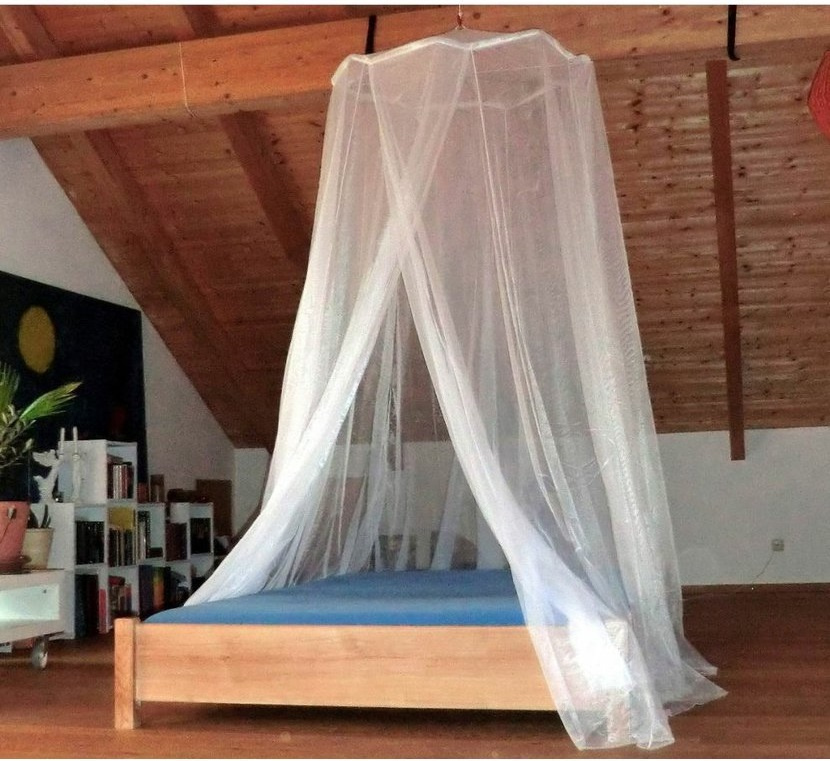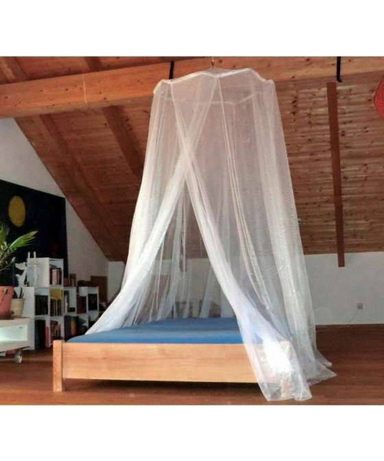 dekorativní moskytiéra ve tvaru zvonu přes jednu postel nebo dvě malé postele z polyesterové síťoviny, která poskytuje ochranu před hmyzem dokáže úspěšně odpuzovat bodavý hmyz, jako je např. druh Culex, Anopheles (malárie) nebo Aedes (horečka dengue, žlutá zimnice, chicungunya) určeno pro fyzickou ochranu před komáry a dalším nepříjemným hmyzem a zároveň jako dekorace interiéru řada Lodge se vyznačuje velkými rozměry pro stabilní a trvalejší instalaci a umístění vyrobeno ze 100% polyesteru v bílém provedení, který je těžší, kvalitnější a snadno se udržuje hustota 37 ok na cm2 díky 10 metrovému obvodu je určeno přes jednu postel nebo dvě malé postele bambusové rozpěrky se zasunují do střechy o průměru 1 metr, aby se moskytiéra dobře rozprostřela překrývající se vchod ideální pro nerušený spánek doma nebo během rekreačních pobytů a pro dekorativní úpravu úložný obal s poutkem pro zavěšení moskytiéra není impregnovanáVíce