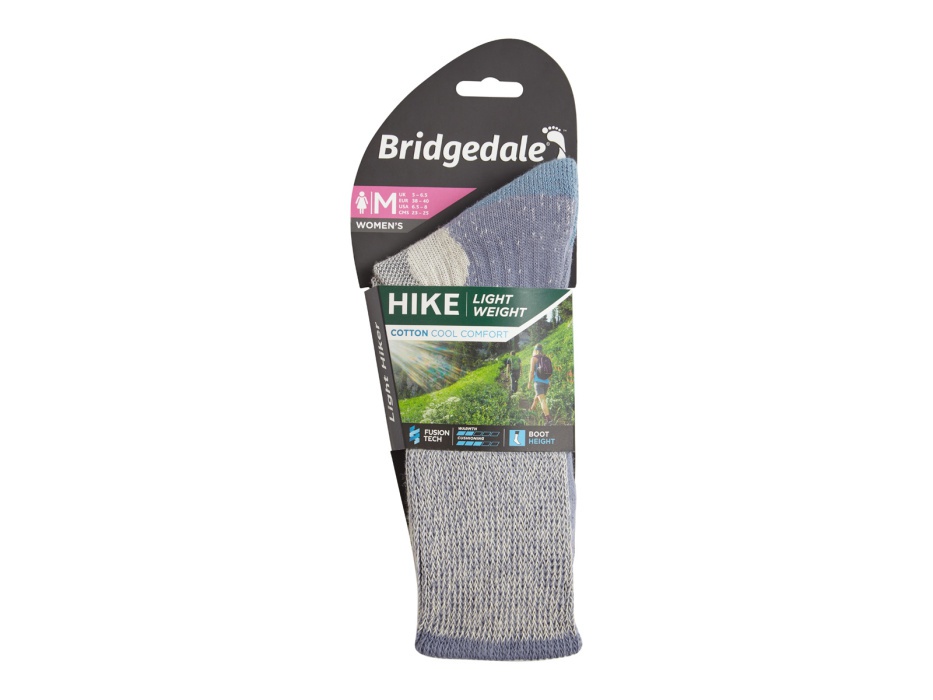 Tyhle lehké ponožky Bridgedale jsou nástupcem modelu CoolFusion Light Hiker stvořeným pro horké letní dny, kdy se nohy potí a potí. Vlákno Coolmax® se stará o rychlý odvodu vlhkosti od pokožky a česaná bavlna dodává nečekanou dávku pohodlí.