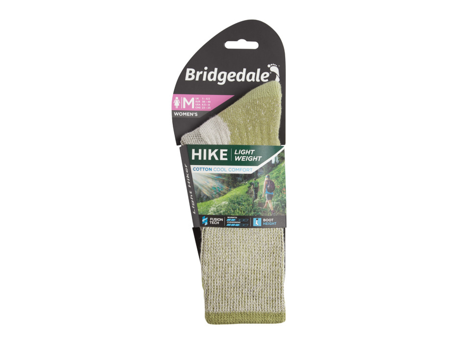 Tyhle lehké ponožky Bridgedale jsou nástupcem modelu CoolFusion Light Hiker stvořeným pro horké letní dny, kdy se nohy potí a potí. Vlákno Coolmax® se stará o rychlý odvodu vlhkosti od pokožky a česaná bavlna dodává nečekanou dávku pohodlí.