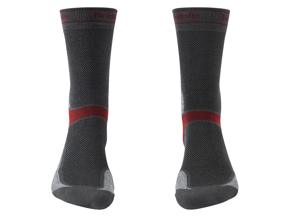 Když se práší od kol a po tváři stékají čůrky potu, právě tehdy je v každém šlápnutí poznat i drobné nepohodlí. To zjistilo i patnáct bikerů z Peak District, když po dva roky testovali tyto nové MTB ponožky Bridgedale určené do teplých letních dnů. Opakovaně se vydávali do terénu a pak vraceli do sídla Bridgedale se svými postřehy. Odhalili při tom šest klíčových problémů, které lidé v Newtownards museli vyřešit: odvod potu, přesný protiskluzový střih, vibrace pod nohama, ochranu Achillovy šlachy, ochranu kotníků a asymetrickou konstrukci, aby v botách nedocházelo ke tření. Řešení se našlo a díky výjimečnému výrobnímu procesu v Bridgedale přišly na svět další nebývale odolné a návykové ponožky.