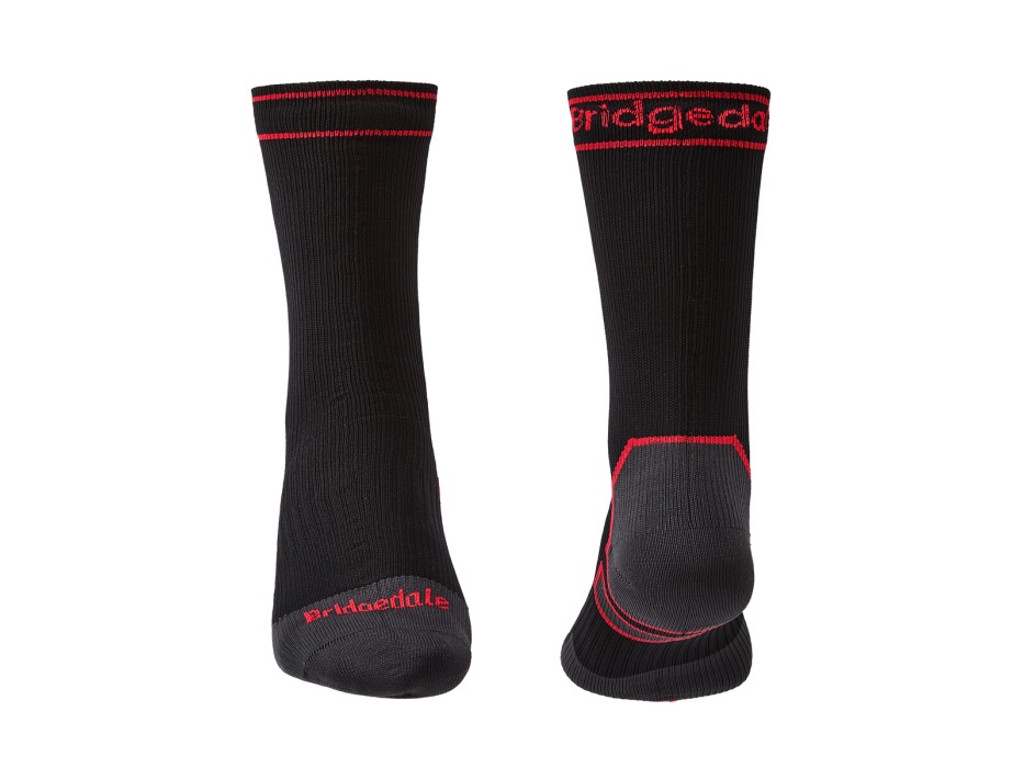 Když jde do tuhého – když se chlad a vlhkost spolčí dohromady – tak to je správná chvíle obout nepromokavé ponožky, které udrží nohy v teple a třeba je i ochrání před omrzlinami. Nepromokavé ponožky Bridgedale v sobě mají membránu Hydrotech s vodním sloupcem 10000 mm a paropropustností 15000 g/m2/24h. Zvenčí chrání membránu před poškozením nylonový úplet a uvnitř udržuje příjemné klima merino vlna, která je odolná vůči zápachu a hřeje i vlhká.