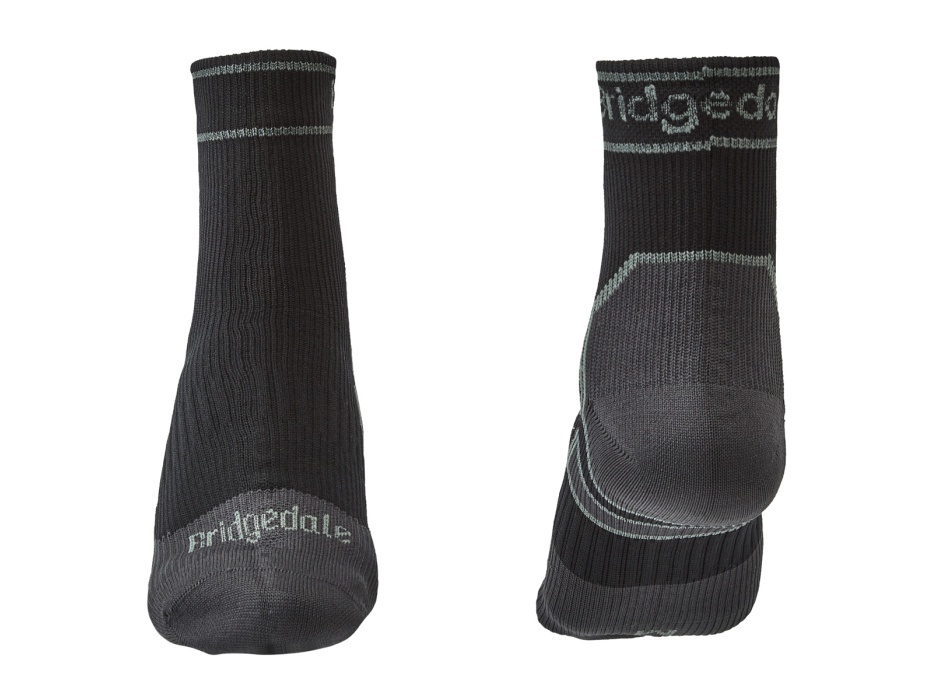 Když jde do tuhého – když se chlad a vlhkost spolčí dohromady – tak to je správná chvíle obout nepromokavé ponožky, které udrží nohy v teple a třeba je i ochrání před omrzlinami. Nepromokavé ponožky Bridgedale v sobě mají membránu Hydrotech s vodním sloupcem 10000 mm a paropropustností 15000 g/m2/24h. Zvenčí chrání membránu před poškozením nylonový úplet a uvnitř udržuje příjemné klima merino vlna, která je odolná vůči zápachu a hřeje i vlhká.
