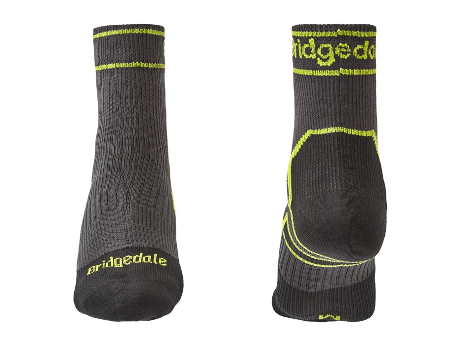 Když jde do tuhého – když se chlad a vlhkost spolčí dohromady – tak to je správná chvíle obout nepromokavé ponožky, které udrží nohy v teple a třeba je i ochrání před omrzlinami. Nepromokavé ponožky Bridgedale v sobě mají membránu Hydrotech s vodním sloupcem 10000 mm a paropropustností 15000 g/m2/24h. Zvenčí chrání membránu před poškozením nylonový úplet a uvnitř udržuje příjemné klima merino vlna, která je odolná vůči zápachu a hřeje i vlhká.