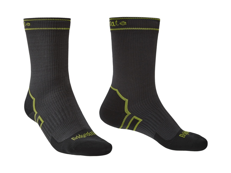 Když jde do tuhého – když se chlad a vlhkost spolčí dohromady – tak to je správná chvíle obout nepromokavé ponožky, které udrží nohy v teple a třeba je i ochrání před omrzlinami. Nepromokavé ponožky Bridgedale v sobě mají membránu Hydrotech s vodním sloupcem 10000 mm a paropropustností 15000 g/m2/24h. Zvenčí chrání membránu před poškozením nylonový úplet a uvnitř udržuje příjemné klima merino vlna, která je odolná vůči zápachu a hřeje i vlhká.