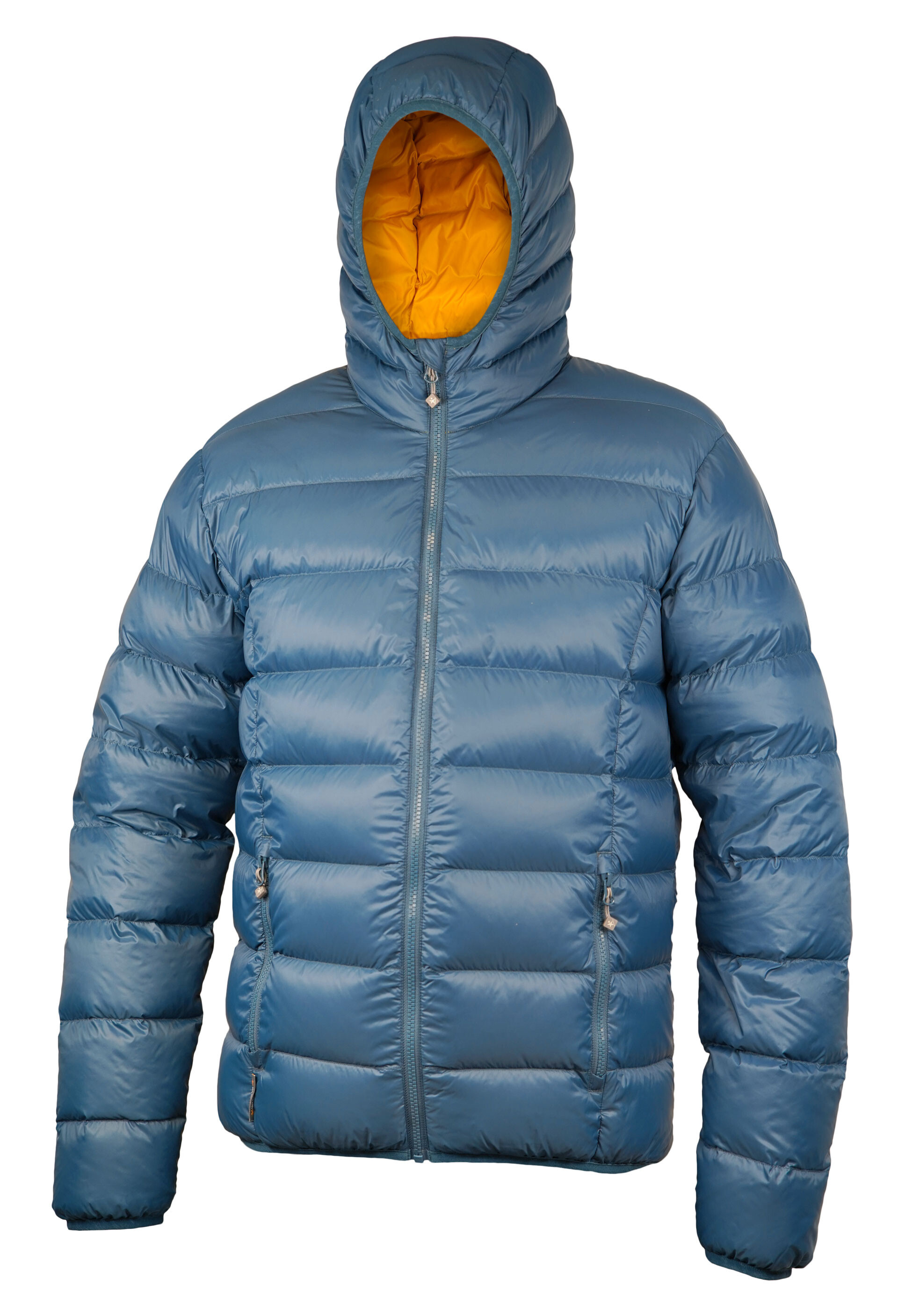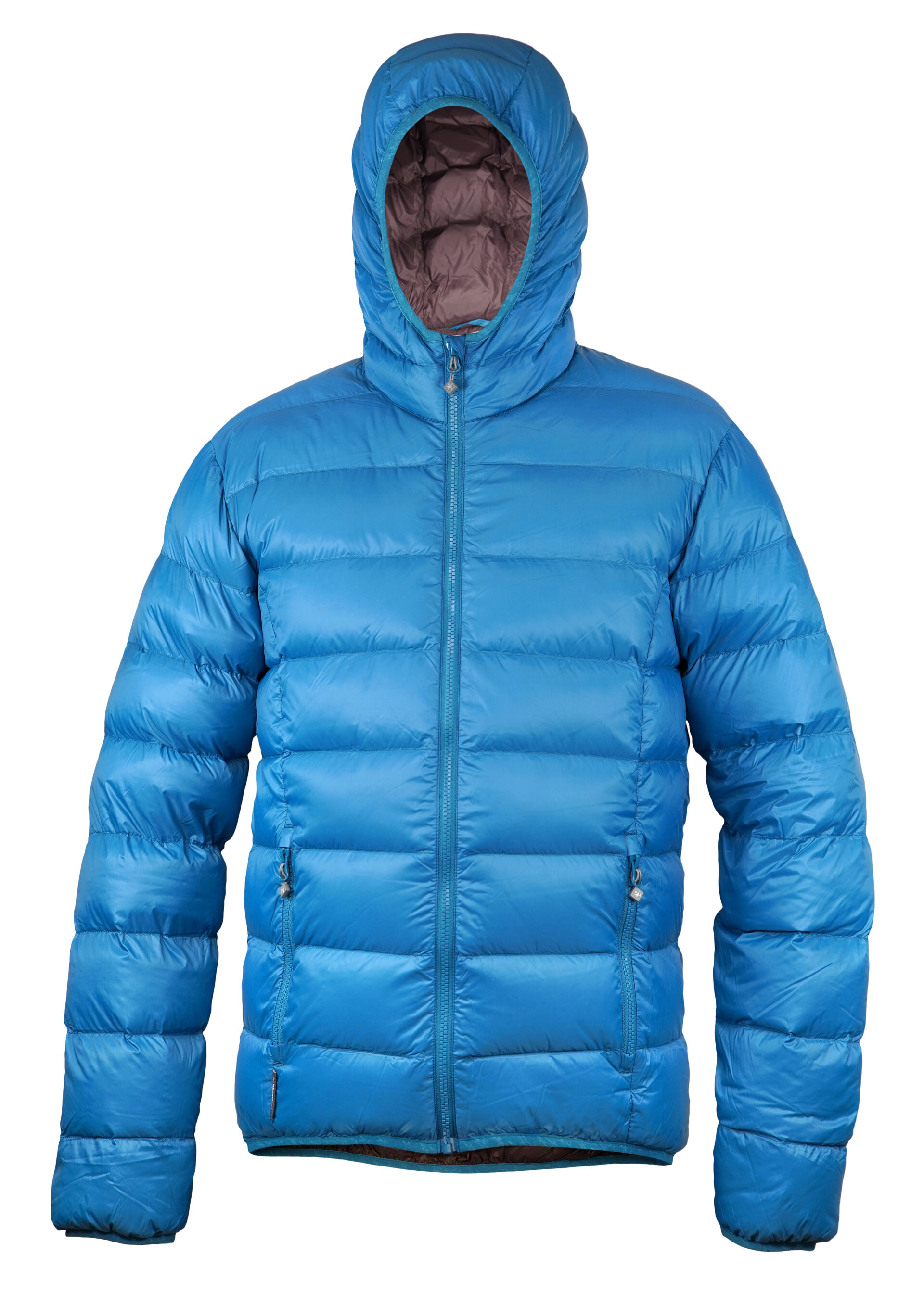 Lehká pánská péřová bunda Warmpeace VERNON s kapucí a materiálu Loft Nylon DWR+. Díky integrovanému obalu zabere v batohu minimum místa.