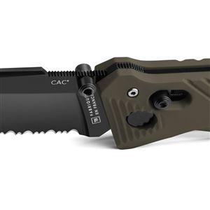 Zavírací nůž TB Outdoor CAC Army PA6 CH, Kombinované ostří, Vývrtka – Army greenTento nůž je skutečným koncentrátem všech nejmodernějších technologií, které lze od operačního nože očekávat.Model C.A.C. je odpovědí společnost TB Outdoor na požadavek francouzské armády, který byl vyjádřen ve velmi přesných specifikacích: navrhnout robustní, obouruční polní nůž s jednoručním otevíráním a zavíráním. Nůž C.A.C.® je třetí iterací "kampaňového nože", který Tarrerias - Bonjean navrhuje a vyrábí pro francouzskou armádu. Jeho nekompromisní design, lehkost a robustnost činí z nože C.A.C.® výjimečný nůž. C.A.C.® je mnohem techničtější a ambicióznější než jeho předchůdci a je odpovědí TB na požadavek francouzské armády, a to navrhnout robustní, obouruční nůž, který lze otevřít a zavřít jednou rukou. C.A.C.®, neboli Combat Assistance Campagne, je výsledkem spolupráce mezi společností TB Outdoor a Philippem Perottim, bývalým příslušníkem francouzských speciálních jednotek. Tato verze nože CAC je vybavena řezákem na řemeny a má vývrtku. Nůž se prodává bez pouzdra. Dodáváno v ochraném boxu s molitanemPřizpůsobte si nůž textem, nebo obrázkem a udělejte z něj jedinečný ORIGINÁL!Nechte svůj nůž gravírovat.Vlastnosti: Ocel - Nitrox® (CAC existuje ve dvou verzích broušení čepele - kombinovana a hladká) Oboustranné použití - Lze otevřít pravou i levou rukou. Otevření - Pružina v patě čepele AXIS® Spona na opasek - Oboustranné použití Řezák popruhů: K řezání bezpečnostních pásů nebo paracordu Poutko: Pro závěs nebo popruh Rozbíječ oken: Hrot z karbidu wolframuParametryHmotnost: 195gTvrdost: +/-1 55 HRCTyp ostří: KombinovanéÚhel ostření: 17 °Materiál střenky: PA6Řezák popruh: AnoVývrtka: AnoSystém otevírání: AXIS®Oboustranně použitelný: AnoSpona na opasek: AnoRukojeť vzor: ChevronDélka čepele: 85 mmDélka rukojeti: 145 mmOcel: Nitrox Příběh C.A.C.®Nůž C.A.C.® byl v roce 2016 oficiálně vybrán francouzskou armádou mezi mnoha konkurenčními výrobky pro svůj výkon, robustnost, nekompromisní kvalitu výroby a cenu.Od roku 2018 je C.A.C.® široce nasazen u ozbrojených sil a denně přispívá k jejich bezpečnosti. Vývoj - Na vytvoření tohoto výjimečného nože spolupracovala společnost TB s Philippem Perottim, bývalým příslušníkem francouzských speciálních jednotek a autorem desítek knih o střelbě a její výuce. Jeho uznávané zkušenosti v boji zblízka umožnily maximalizovat účinnost použití nože, aby se C.A.C.® stal ideálním společníkem vojáků ve všech typech operací. Čepel dokonale odolná proti korozi je vyrobena z materiálu Nitrox®. Nitrox® obsahuje 16 % chromu a 0,35 % uhlíku, snadno se brousí a odolává korozi jako málokterá martenzitická ocel. Výrobní závod a inženýři TB Outdoor se aktivně podíleli na vývojových zkouškách této oceli s jejím specifickým složením. Nerezová ocel dopovaná při výrobě dusíkem, který nahrazuje část uhlíku. Tato ocel dodává čepeli mimořádně vysokou schopnost odolávat korozi, zejména proto, že je čepel potažena PVD povlakem, který tuto odolnost ještě zvýrazňuje. Silnou stránkou této oceli, která v sobě spojuje pružnost a vysokou odolnost, je také řezná kapacita. Bezpečný mechanismus aretace - AXIS® - Společnost TB do nože C.A.C.® integrovala také bezpečný mechanismus aretace čepele pomocí pohyblivé osy. Tento mechanismus je mimořádně robustní a zajišťuje bezchybné zajištění čepele v otevřené poloze. Nůž C.A.C.® byl v roce 2017 oficiálně vybrán francouzskou armádou pro svůj výkon, robustnost, kvalitu a cenu. Nůž C.A.C.® má také rozbíječ oken, vývrtku (v závislosti na modelu) a oboustranný klip na opasek. Je skutečným koncentrátem všech špičkových technologií, které lze od operačního nože očekávat. Rukojeť je tvořena dvěma deskami. Tyto desky jsou k mechanice přišroubovány šrouby z nerezové oceli, přičemž v jedné z nich je důmyslně umístěna čepel na řezání řemínků. Tato zakřivená vyměnitelná čepel je určena k řezání popruhů, lan a bezpečnostních pásů, což usnadňuje vytažení v případě nehody. Nůž C.A.C.® je nabízen ve dvou různých materiálech střenky - G10 a PA6. C.A.C.® je k dispozici také ve fluorescenční žluté barvě, která intenzivně reaguje na UV světlo, takže ji lze nalézt v obtížném prostředí a ve tmě. Varianty střenkyPA6C.A.C.® je multifunkční nůž navržený pro maximální přizpůsobivost. Původně by navržen nůž s rukojetí z PA6, polymeru vyztuženého skleněnými vlákny pro zvýšení jeho odolnosti. PA6 FV má úžasné vlastnosti z hlediska odolnosti proti deformaci a tlumení nárazů, takže je ideální pro nejnáročnější podmínky použit.G10C.A.C.® byl rozšířen o výrobu individuálně opracovaných nástrčných destiček G10 v pevných blocích. G10 je kompozitní materiál na bázi skleněných vláken napuštěných epoxidovou pryskyřicí. Tento materiál je proslulý svou vysokou odolností vůči vlhkosti, teplu, chemikáliím a výjimečnou rozměrovou stálostí. Kapesní nůž je osobní nástrojKaždý od jeho fungování očekává něco jiného. Někteří lidé chtějí flexibilní otevírání a preferují čepel, která je ve svém pouzdře velmi volná. Jiní naopak chtějí tvrdší čep, který navozuje pocit kontroly a bezpečí. S nožem C.A.C.® si můžete vybrat. Osa čepele je nastavitelná s velmi velkou jemností. Přizpůsobte sílu upnutí svému přání. Jednoduše odšroubujte pojistný šroub, nastavte požadovanou sílu na ose čepele zašroubováním/odšroubováním utahovacího knoflíku a vyměňte pojistný šroub. Nic není jednoduššího ! Jeho ergonomieC.A.C.® umožňuje 