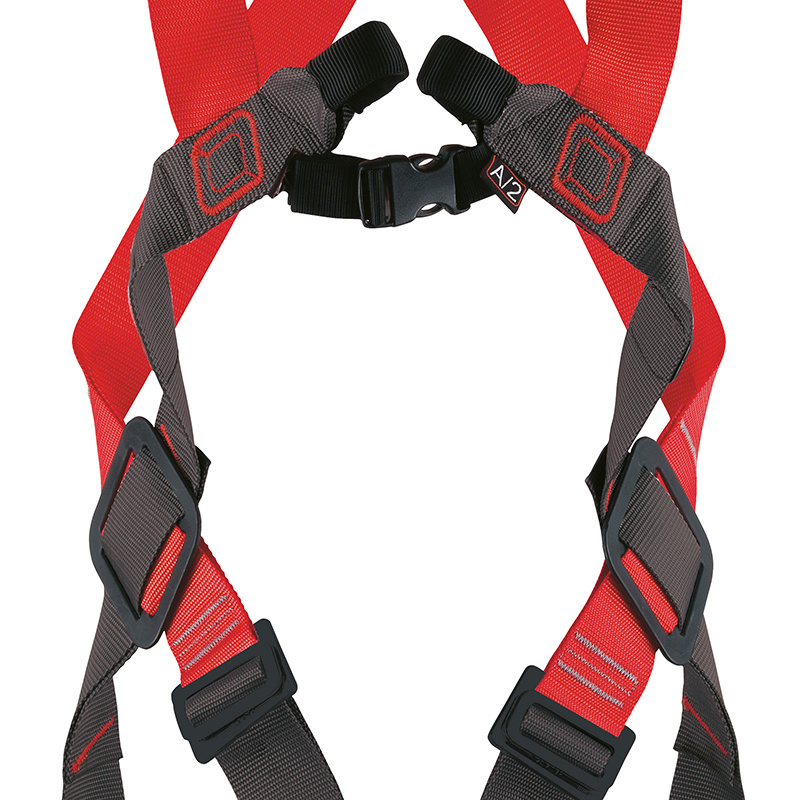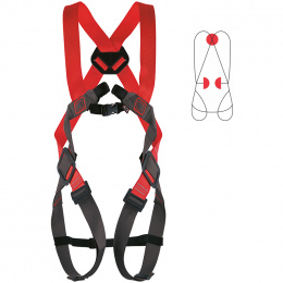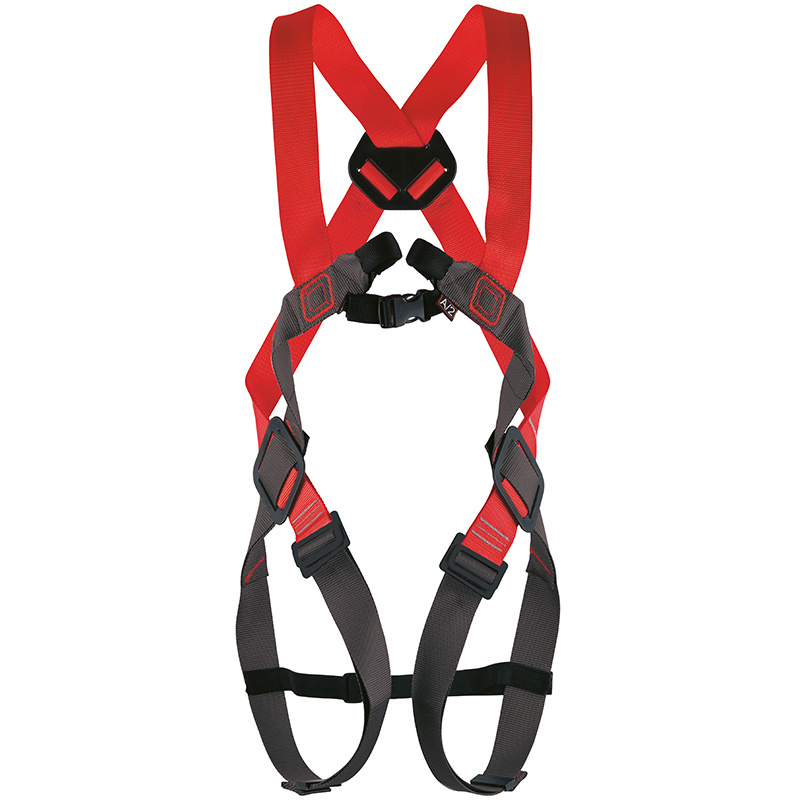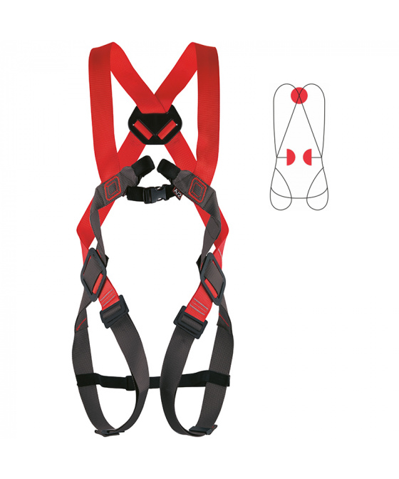 Celotělový nastavitelný pracovní úvazek se 2 připojovacími body pro zachycení pádu. Jeden bod je vytvořen vpředu pomocí dvou šitých pevnostních textilních ok a druhý na zádech v podobě ocelového kroužku. K úvazku je možné připojit také pracovní polohovatelný pás C.A.M.P. Easy Belt.