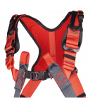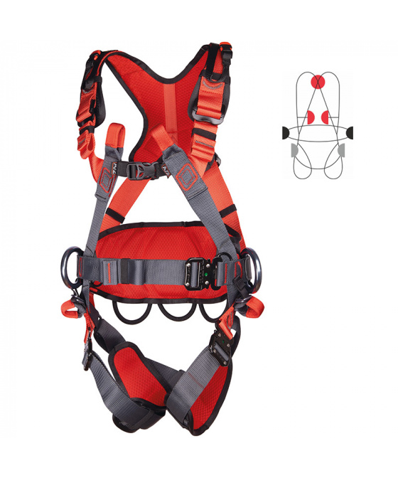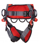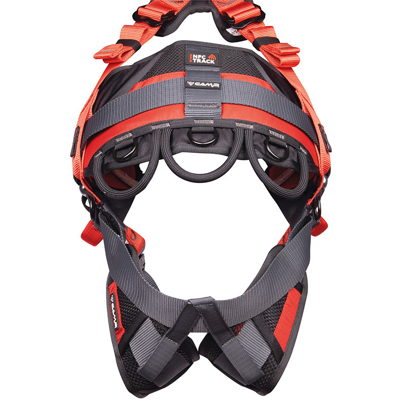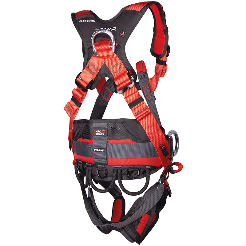 C.A.M.P. Elektron je celotělový pracovní postroj s konstrukcí pro zachycení pádu, doplněný polohovacími bočními oky. Všestrannost tohoto postroje je navíc doplněna tvarovaným polstrováním v místech zatížení, což přináší vysoký komfort při delším odsednutí do lana a zároveň je zachována maximální volnost při pohybu. Pro zachycení pádu slouží připojitelné body v předu (textilní oka) a na zádech (duralové oko). Postroj je dále vybaven bočními kovovými body pro polohování, třemi šitými materiálovými oky, kovovými očky pro připojení nářadí, očky pro připojení materiálové karabiny C.A.M.P. Kilo. Bederní popruh je stejně jako nohavičky opatřen uzamykatelnými rychlo sponami. Mezi důležitou výbavu pracovního postroje C.A.M.P. Elektron patří i speciální certifikovaná ramenní očka pro „odložení“ jistících háků při pohybu na zemi a speciální očka pro připojení C.A.M.P. Helpstep (dvojitá stupačka pro snížení trauma z visu při pádu, nebo delším zavěšení - není součástí postroje)