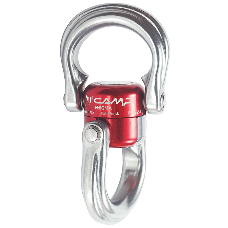 Enigma je unikátní pracovní otočný obrtlík s kuličkovým ložiskem pro maximální efektivitu. Systém Enigmy umožňuje jednoduchou demontáží, pomocí speciálního klíče, rozebrat obrtlík a do připravených kovových ok se světlostí 18 mm připojit lano nebo lanko s bezpečnostním okem. Připravený systém tak pro připojení lana nepotřebuje žádný další konektor a celý systém závěsu a zajištění se tak zbytečně neprodlužuje. pracovní oka jsou v dostatečné šíři pro připojení i více konektorů.