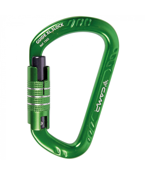 Velmi pevná a odolná keylocková „D“ karabina z hliníkové slitiny s velkou světlostí. Karabina C.A.M.P. Guide XL 3Lock s 3 polohovou pojistkou zámku (triple lock) pro své otevření vyžaduje tři pohyby - vysunutí, otočení, vyklopení. Guide XL 3Lock je skvělou volbou pro záchranné scénáře, arboristy, ale své místo si najde i ve výbavě horolezců a alpinistů.