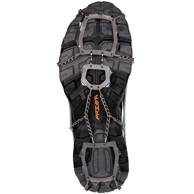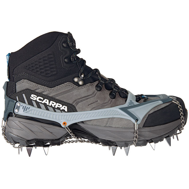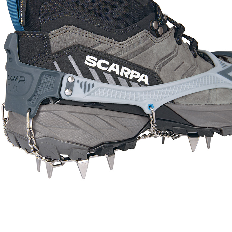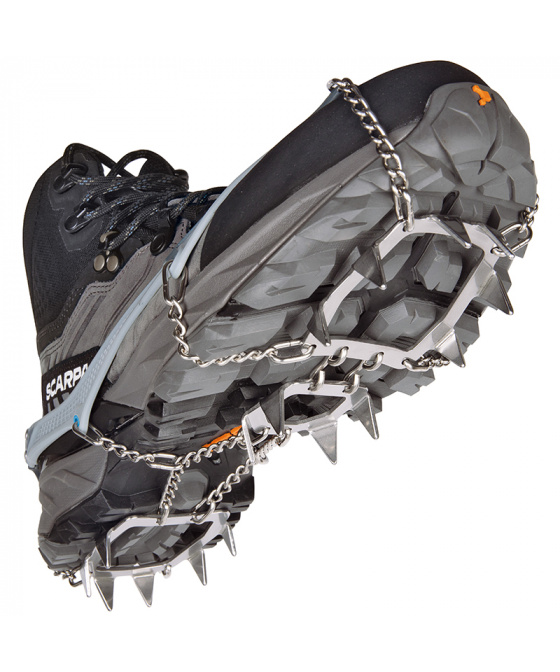 Turistické nesmeky C.A.M.P. Ice Master Pro představují špičkové řešení pro bezpečný pohyb na zledovatělém terénu. Díky inovativnímu dvoumateriálovému upínacímu systému se nesmeky dokonale přizpůsobí obuvi, k tomu nabízí vysokou stabilitu a jistý pohyb. Tuhé plotny s 16 nerezovými hroty o výšce 15 mm zajišťují maximální trakci, boční stabilitu i brzdný účinek, zatímco jejich odlehčená konstrukce udržuje celkovou hmotnost na minimu. Přední hroty jsou navíc kloubově uchycené, takže se přirozeně přizpůsobí pohybu boty i členitému terénu. Součástí balení je kompaktní pouzdro, které chrání hroty a zároveň zabraňuje poškození další výbavy při transportu.