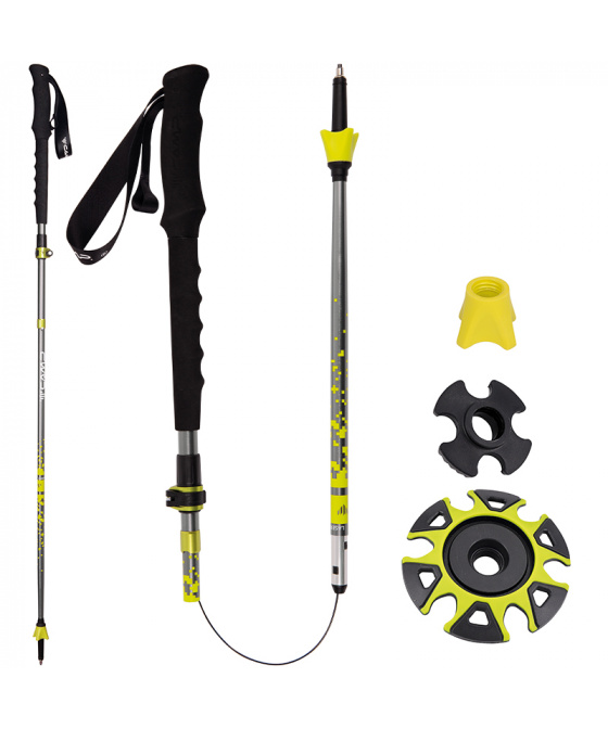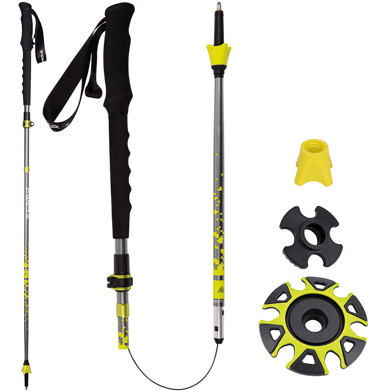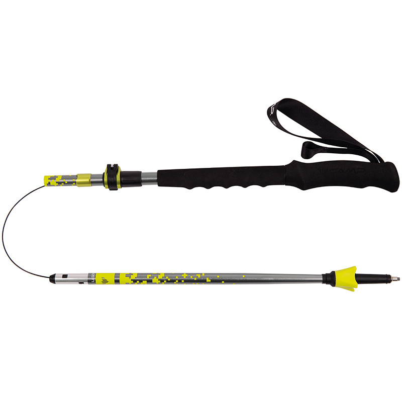Skládací trekingové hole C.A.M.P. Laser ADJ jsou navrženy pro náročné túry, kde je důležitá nízká hmotnost, spolehlivost a vysoká odolnost. Nová konstrukce hliníkových segmentů přináší ideální kombinaci tuhosti, pevnosti a dlouhé životnosti při zachování velmi nízké hmotnosti. Hole se skládají ze 4 segmentů, které jsou spojeny vnitřním 1,5mm ocelovým lankem s polyamidovým opletem. Díky upraveným náběžným zakončením (jako u lavinové sondy) je sestavení nebo rozložení holí velmi rychlé a jednoduché. Horní segment je vybaven rychlým a bezpečným klipem pro přesné nastavení délky v rozmezí 115–135 cm. Pro maximální komfort při chůzi jsou hole vybaveny prodlouženými ergonomickými pěnovými madly, která umožňují jistý úchop v různých pozicích – což oceníte zejména v prudkém nebo technickém terénu. Pohodlí při používání zvyšují také měkká ergonomická poutka na zápěstí.
