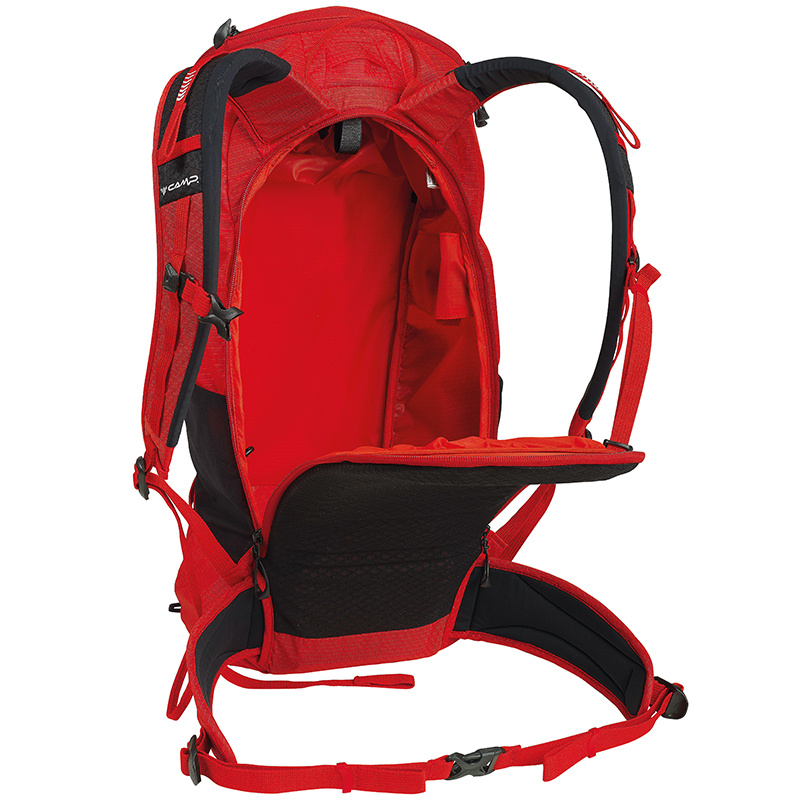 Máš před sebou víkend v Rakousku, kde budeš zdolávat místní věhlasné ledy. Jako svého pomocníka bereš batoh CAMP M20 - malý a lehký nosič vybavení speciálně navržený pro jednodenní túry, zimní lezení a alpinismus. Brzy ráno balíš vše potřebné na celý den lezení v ledu. V přístupu k věcem máš na výběr buď horní, nebo zadní vstup, což ti ušetří práci a nervy, pokud zrovna nemáš dostatek prostoru kolem. Při dlouhém nástupu tě potěší stabilita batohu díky snadno nastavitelným popruhům a 3 mm hliníkovému rámu, který ani s napěchovanými věcmi nedovolí změnit tvar. Ventilační systém XAir z 3D EVA pěny a prodyšné síťky ti při zvýšené námaze zaručí stálý komfort. Ani s těžším nákladem tě popruhy nebudou dřít nebo se nepříjemně zařezávat do ramen díky ergonomickému tvarování a polstrování v místech kontaktu. V kapse horního víka máš uschované důležité drobnosti jako je nákres cesty, nabitý mobil a malá lékárna. Skládací hole můžeš schovat do dvou bočních elastických kapes a vybavení jako cepíny, přilbu a lano na batoh upevníš pomocí dalších připravených popruhů. I takto naložený batoh ti nijak nebráni v pohybu a plynule můžeš stoupat k nástupu. Na místě se s parťákem nachystáte k samotnému lezení a zábava může začít.