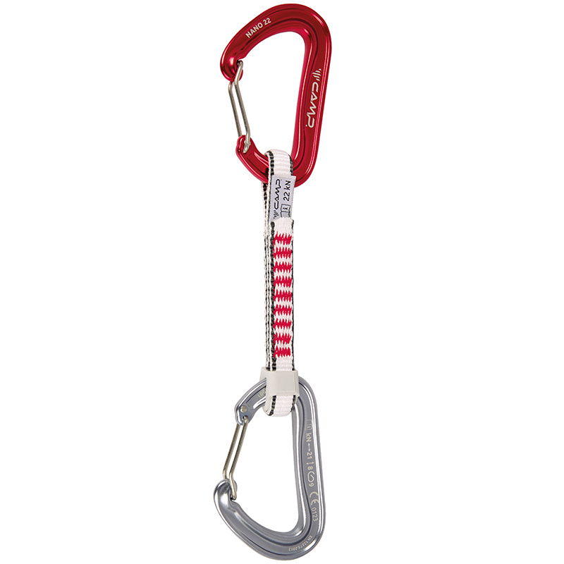 Sada 6 ks TOP ultralehkých expresek pro ty nejnáročnější lezce. Nano 22 Express je kombinací 2 drátových karabin C.A.M.P. Nano 22 a 11 mm Dyneema® smyčky v délce 12 cm, která vyniká svou minimální hmotností a vysokou pevností. Důležitou součástí expresky je doplněk Karstop Evo, který zamezuje protáčení karabiny, kterou prochází lano.