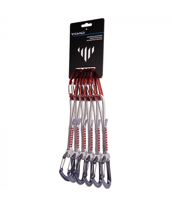Sada 6 ks TOP ultralehkých expresek pro ty nejnáročnější lezce. Nano 22 Express je kombinací 2 drátových karabin C.A.M.P. Nano 22 a 11 mm Dyneema® smyčky v délce 18 cm, která vyniká svou minimální hmotností a vysokou pevností. Důležitou součástí expresky je doplněk Karstop Evo, který zamezuje protáčení karabiny, kterou prochází lano.