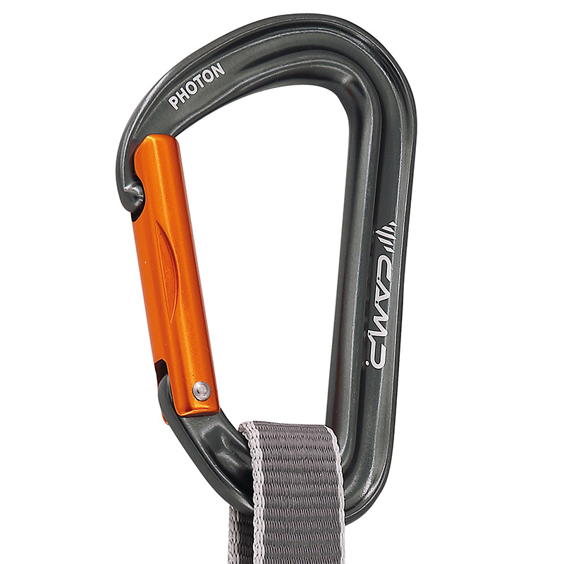 Profesionální mixová expreska s ultralehkými plnými karabinami CAMP Photon Straight Gate s keylockem a CAMP Photon Wire. Karabiny jsou spojeny širokou polyesterovou 18cm smycí. Drátová karabina CAMP Photon Wire je nejlehčí karabinou v plné velikosti, kterou CAMP nabízí. Karabiny CAMP Photon Straight Gate jsou vylepšeny o patentovanou úpravu SphereLock, která přesným výbrusem nosu a zámku karabiny ještě zvyšuje pevnost při zatížení. Další vychytávkou je doplněk Karstop Evo, který zamezuje protáčení karabiny, kterou vede lano. Barevné zvýraznění karabin je navrženo pro maximální přehled, orientaci a kontrolu v terénu.