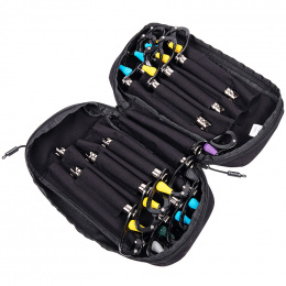 Rocket Case je odolné a kompaktní pouzdro určené pro přehledné a bezpečné uložení ledových šroubů uvnitř batohu. Chrání šrouby i ostatní vybavení před poškozením a zároveň udržuje vše přehledně uspořádané. Pouzdro pojme až 16 šroubů různých délek, které jsou umístěny v samostatných přihrádkách zabraňujících kontaktu závitů. Vnější kapsa na zip je ideální pro uložení drobných nástrojů nebo krytek šroubů. Vyrobeno z pevného nylonu odolného proti prodření a propíchnutí. Otvory na dně umožňují odtok vody při tání ledu.