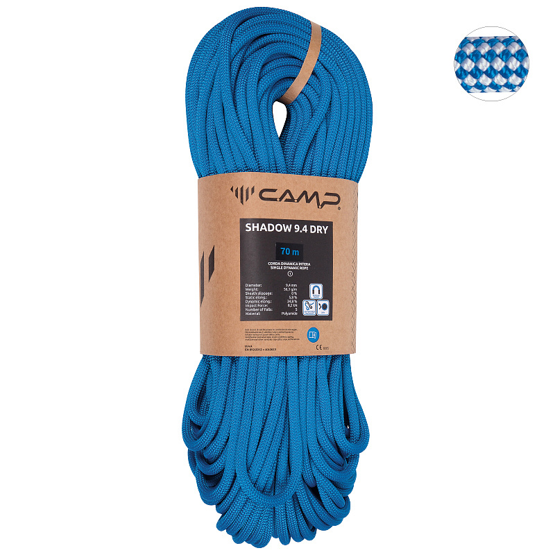 C.A.M.P. Shadow je horolezecké dynamické lano s průměrem 9,4 mm a impregnací opletu DRY. Shadow je ideálním partnerem pro nejširší nabídku horolezeckých disciplín. Se svým průměrem 9,4 mm nabízí krom perfektního handlingu také nízkou hmotnost a dobře se ovládá jak v klasickém kyblíku ( např. C.A.M.P. PIÚ 2) tak i v poloautomatickém jistítku třeba i s anti-panic brzdou jako je C.A.M.P. Matik.