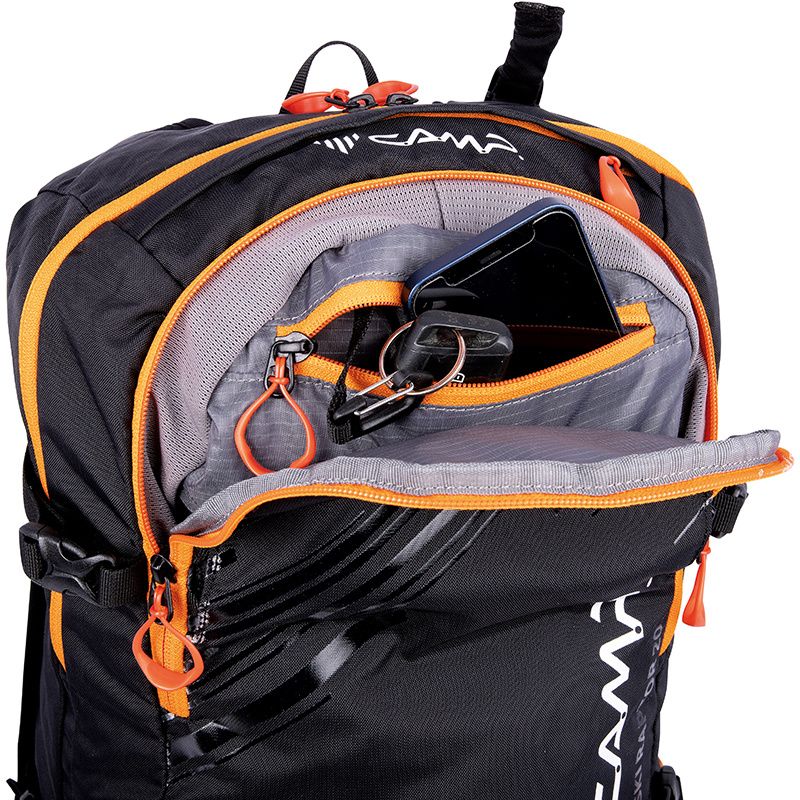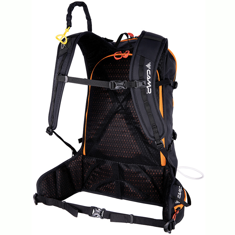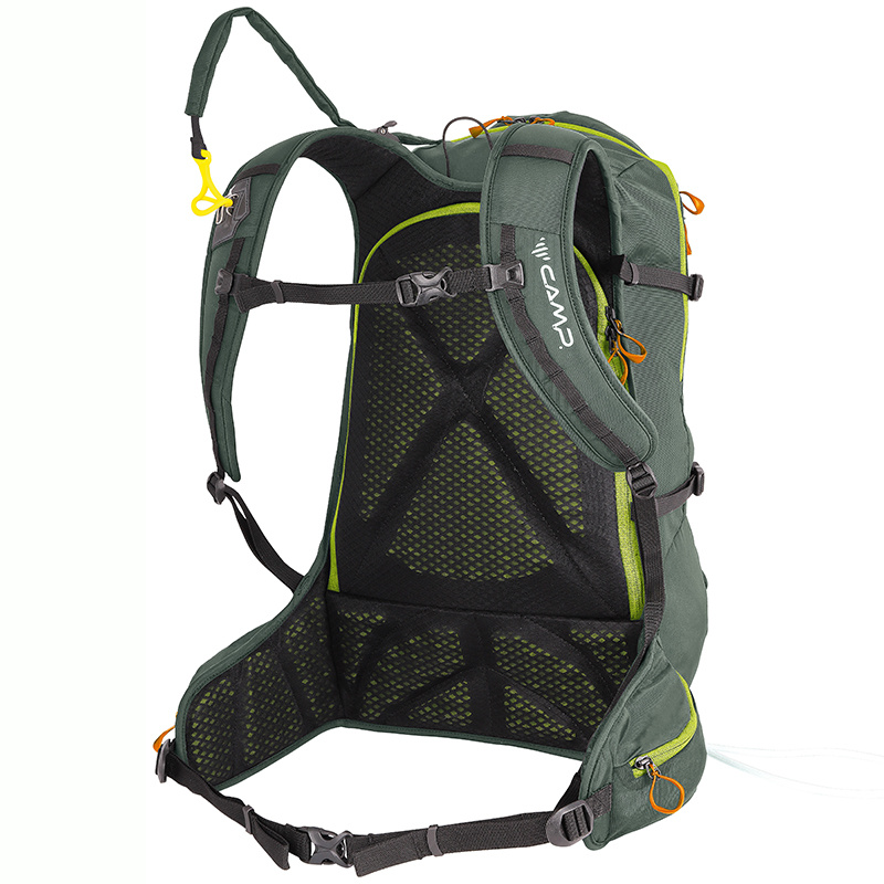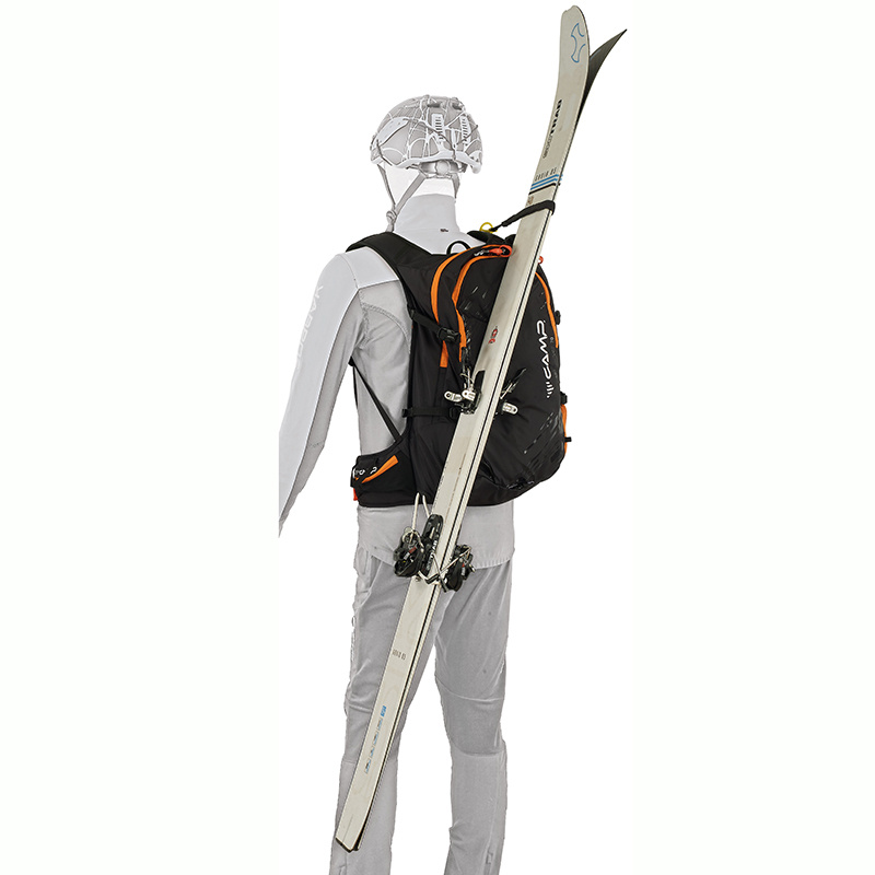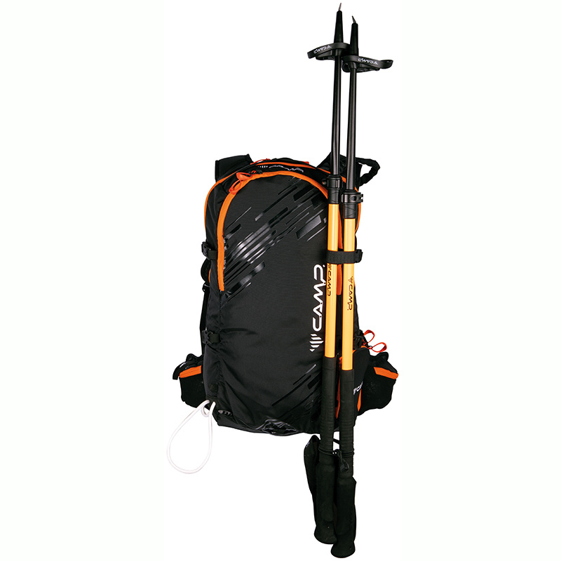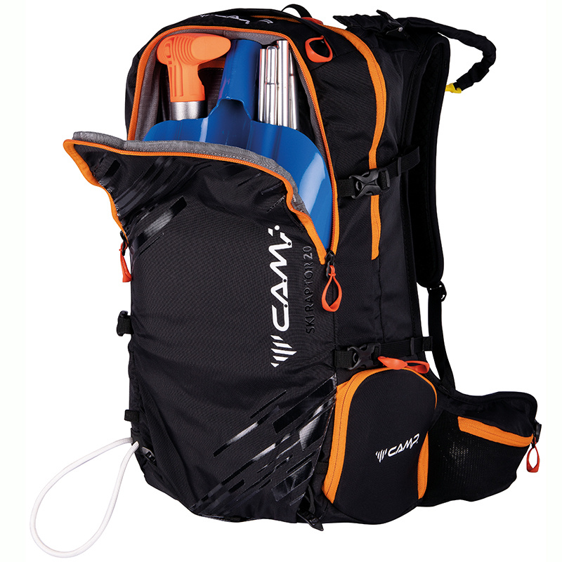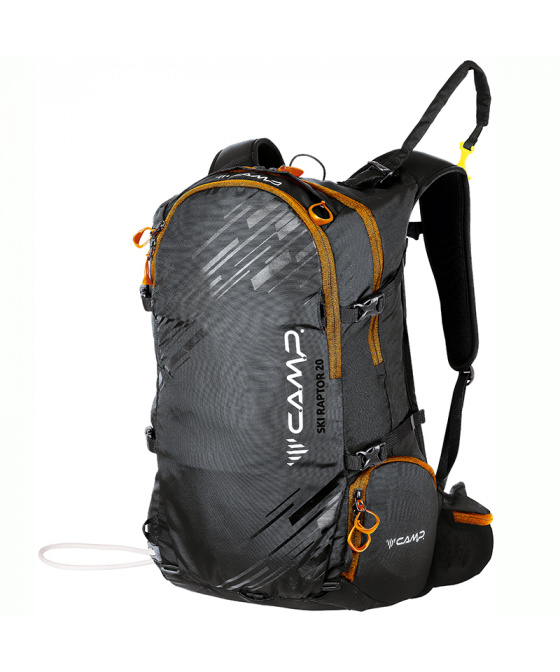 Ski Raptor 20 je ideální pro lehčí, rychlé skialpové freeridové túry. Konstrukční a funkční prvky vycházejí z profesionálních CAMP závodních skialpových batohů. Ski Raptor oproti závodním verzím nabízí polstrovaní zad, ramenních a bederních popruhů a je vyroben z velmi odolné textilie 420D Ripstop nylon. Pro jednoduché a rychlé sundání / nahození lyží, bez nutnosti sundávat batoh, slouží inovativní systém X-Press. Systém X-Press lze nastavit do dvou poloh pro snadnější upnutí lyží i při naplněném / prázdnějším batohu. Další předností batohu Ski Raptor je přístup do hlavní komory přes záda, zipem oddělená komora pro mačky s bočním vstupem, přední kapsa s rychlým přístupem pro lopatu a sondu a doplňky pro uchycení cepínu, hůlek, přilby, či lyží na boční část batohu.