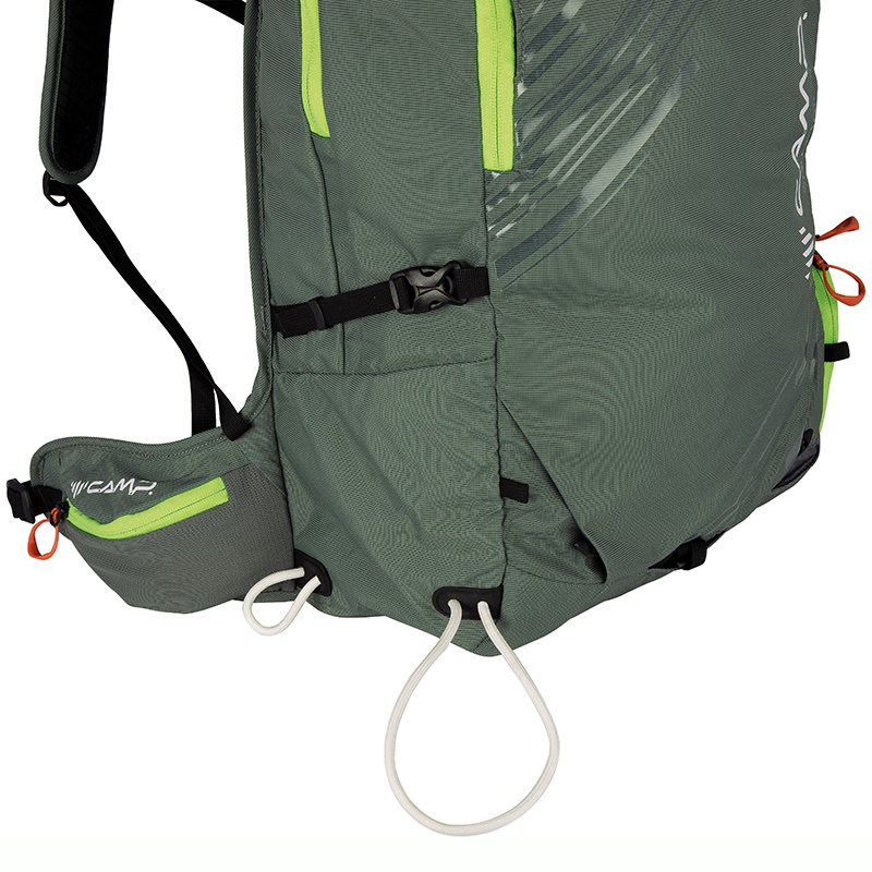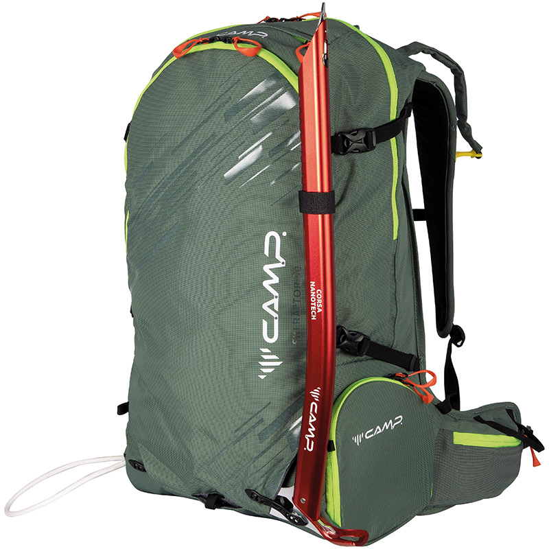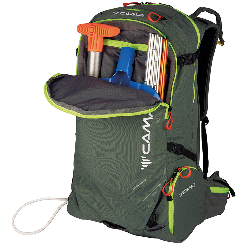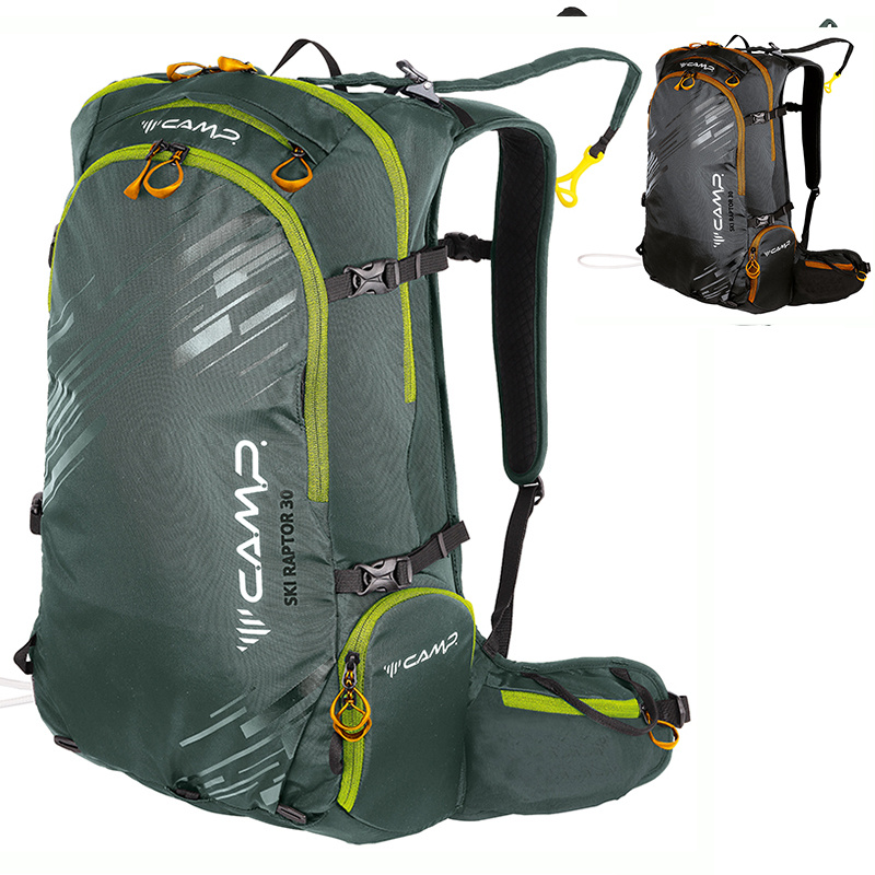 Ski Raptor 30 je skialpový batoh navržený pro krátkou i celodenní zimní túru. Konstrukční a funkční prvky vycházejí z profesionálních CAMP závodních skialpových batohů. Ski Raptor oproti závodním verzím nabízí polstrovaní zad, ramenních a bederních popruhů a je vyroben z velmi odolné textilie 420D Ripstop nylon. Pro jednoduché a rychlé sundání / nahození lyží, bez nutnosti sundávat batoh, slouží inovativní systém X-Press. Systém X-Press lze nastavit do dvou poloh pro snadnější upnutí lyží i při naplněném / prázdnějším batohu. Další předností batohu Ski Raptor je přístup do hlavní komory přes záda, zipem oddělená komora pro mačky s bočním vstupem, přední kapsa s rychlým přístupem pro lopatu a sondu a doplňky pro uchycení cepínu, hůlek, přilby, či lyží na boční část batohu.