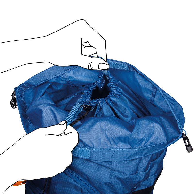- Elastická přední kapsa na mokré vybavení (např. pásy nebo vrstvy oblečení)