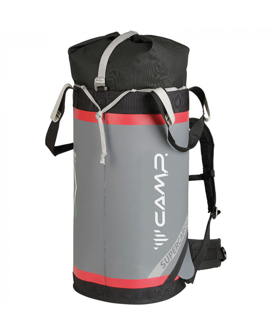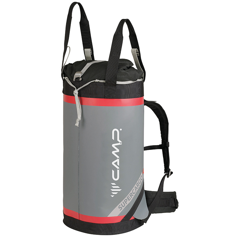 Máš vysoké cíle, myšlenky na ty nejvyšší stěny a vrcholy. Ať už jsou to Alpy a nebo Patagonie, tvým tahounem věcí při cestách a nebo přímo ve stěně je nezničitelný batoh Camp Supercargo. Batoh je vyroben ze super odolného materiálu Tarpaulin TPU 4500D a je takřka nezničitelný a nepromokavý. Při přípravách zabalíš vše potřebné do velké hlavní komory a pomocí pohodlného zádového systému odneseš vybavení až k nástupu. Uschováním zádového systému a bederního popruhu připravíš batoh na hladké tahání stěnou a nachystáš tažné popruhy k připnutí na pomocné tažné lano. Po zdolání každé lanové délky se batoh těžce odírá cestou vzhůru, aby jste měli potřebné věci stále u sebe. Vevnitř vaku najdete jednu větší kapsu na zip a tři materiálová oka pro uspořádání materiálu. V případě nepřízně počasí jsou ve dně batohu dva odvodňovací otvory a jim batoh nenabírá na váze. Díky batohu máte s parťákem komfort ve stěně, jako v základním táboře.