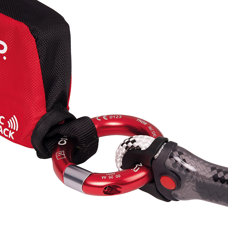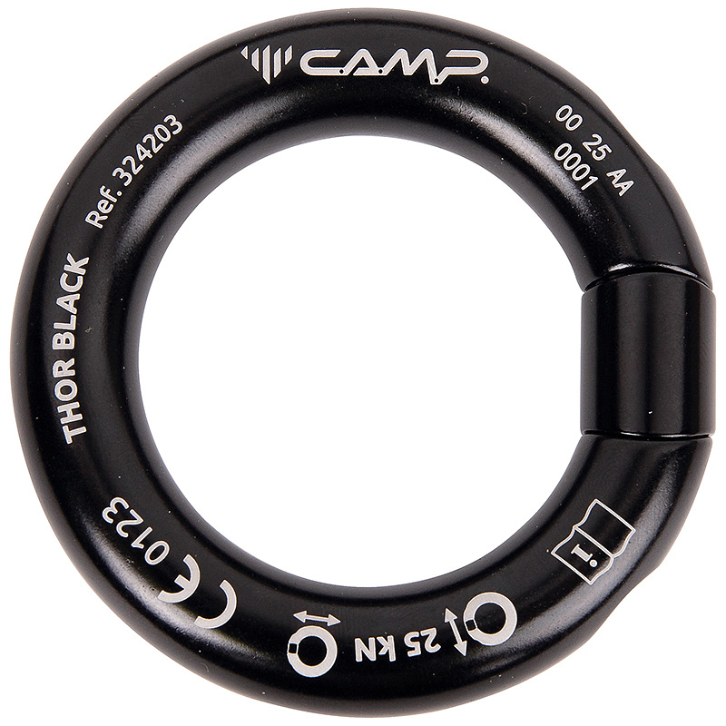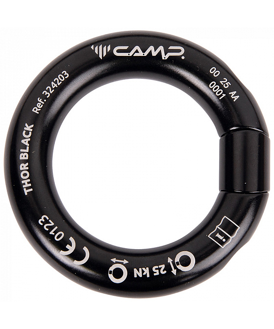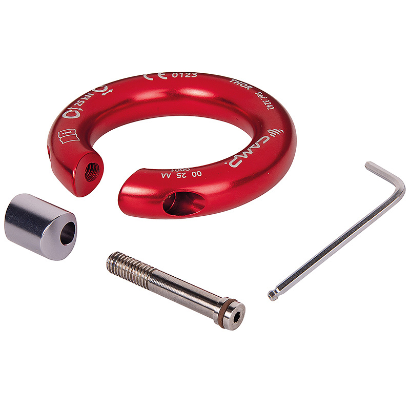 Thor je pracovní otevíratelný spojovací kroužek s pevností 25 kN, splňující normy EN a ANSI. Patří mezi nejpevnější otevíratelné kroužky na trhu. Spojovací čep s aretačním závitovým šroubem umožňuje snadnou manipulaci a vysokou úroveň bezpečnosti. Kruhový tvar zajišťuje plnou pevnost ve všech směrech zatížení. Tělo je vyrobeno z hliníkové slitiny, uzavírací čep se závitem je z nerezové oceli. Povrch po celém obvodu, včetně oblasti uzávěru, je hladký a přesně opracovaný pro plynulou manipulaci s lany, smyčkami a dalším vybavením. Zajišťovací čep o šíři 14 mm umožňuje připojení široké škály konektorů či textilních lanyardů. Závitový aretační šroub je opatřen gumovým O-kroužkem, který brání uvolnění vlivem vibrací a dynamického zatížení. Součástí balení je imbusový klíč 2,5 mm.
