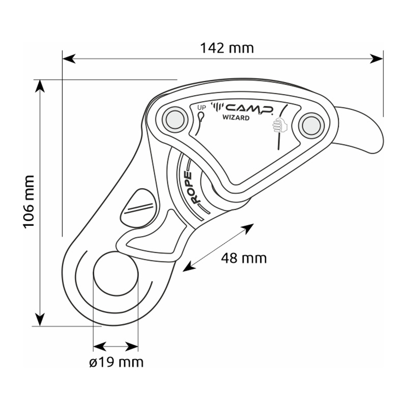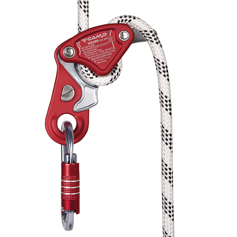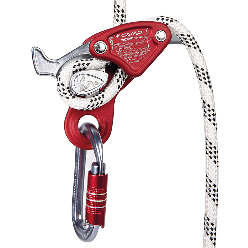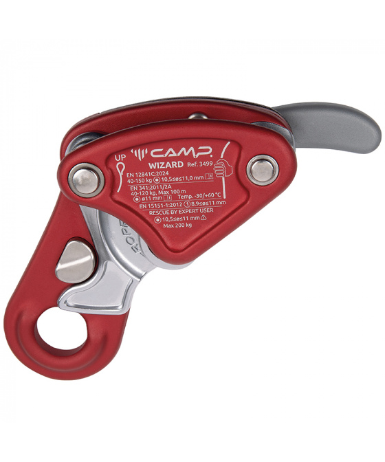 C.A.M.P. Wizard je lehká a kompaktní pracovní slaňovací brzda s automatickým blokováním a certifikací pro práce ve výškách i záchranné scénáře. Wizard přichází s praktickým doplňkem - aretačním tlačítkem vačky - díky kterému můžete jednoduše uvolnit dynamickou vačku pro založení lana bez potřeby odepínat brzdu z postroje. Brzda Wizard je opatřena bezpečnostním systémem anti-panic, který slouží k zablokování lana při hraničním tlaku na vačku. To může nastat při příliš rychlém prokluzu lana způsobeném rychlým spouštěním nebo náhlým propadnutím při sjezdu. Anti-panic systém lze jednoduše odblokovat vrácením slaňovací páky do původní polohy a následně pokračovat ve spouštění.