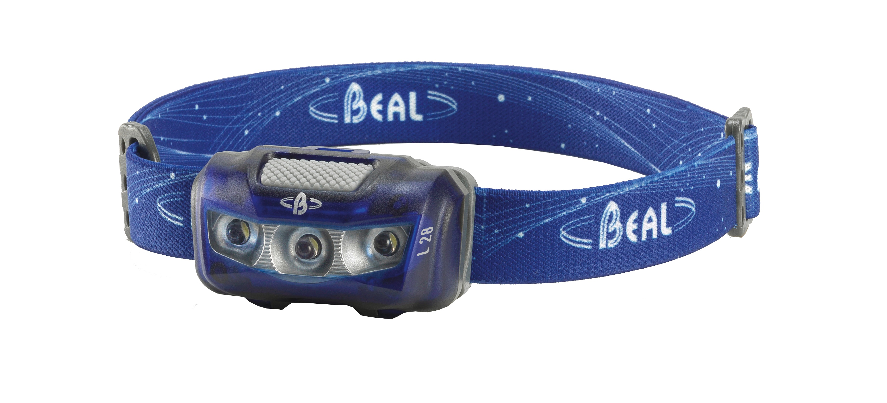Malá, kompaktní čelovka Beal L28 se svítivostí 28 lumenů.