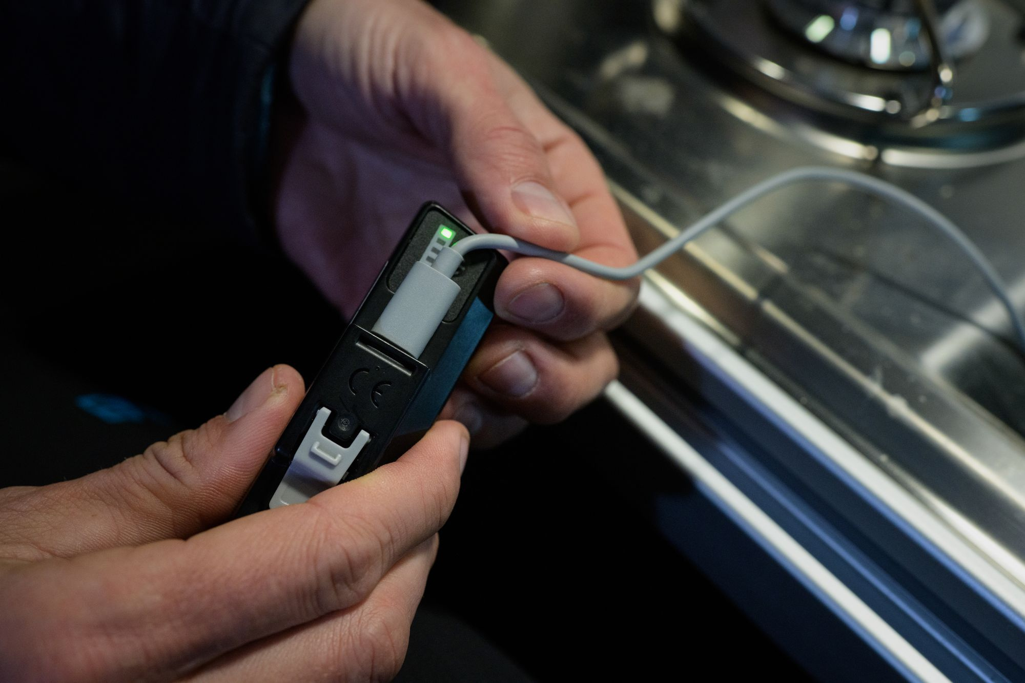 - Dobíjecí Li-Ionový akumulátor s kapacitou 3200 mAh, dobíjecí pomocí USB portu typu C, který lze vyjmout ze zadní základové desky a používat samostatně jako power banku pro nabíjení jiných zařízení, jako např. hodinek nebo telefonu