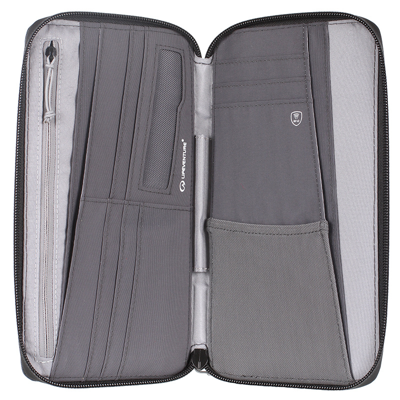 Praktické cestovní pouzdro na dokumenty a doklady, vyrobené z recyklovaného materiálu a s kompletní RFiD ochranou. Voděodolné pouzdro nabízí jednu venkovní kapsu (bez RFiD ochrany) a dalších 16 kapes uvnitř. RFiD Travel Wallet spolehlivě ochrání vaše citlivá data (průkazy, kreditní karty, ...) i další pro Vás důležitě dokumenty a doklady.