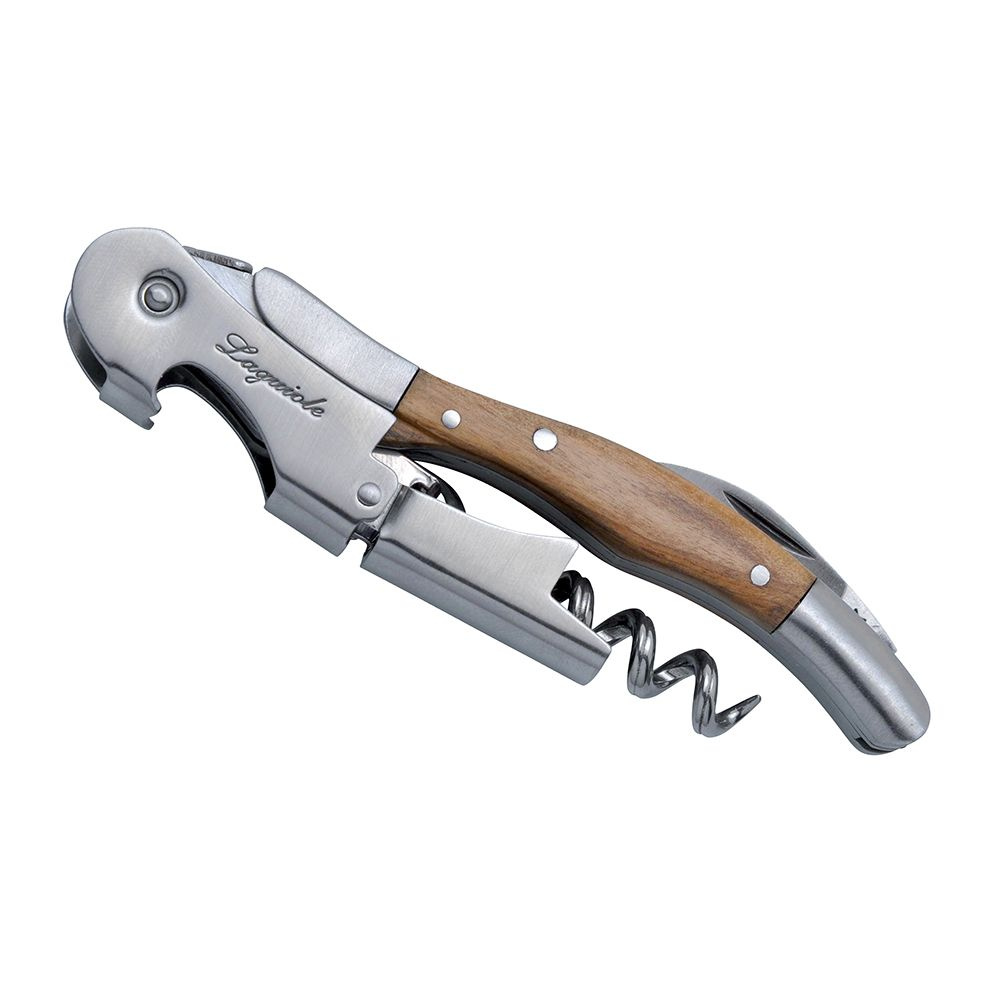 Skutečně profesionální číšnický nůž s dvoustupňovým mechanismem vytahovače korků a vývrtkou s 5-ti z